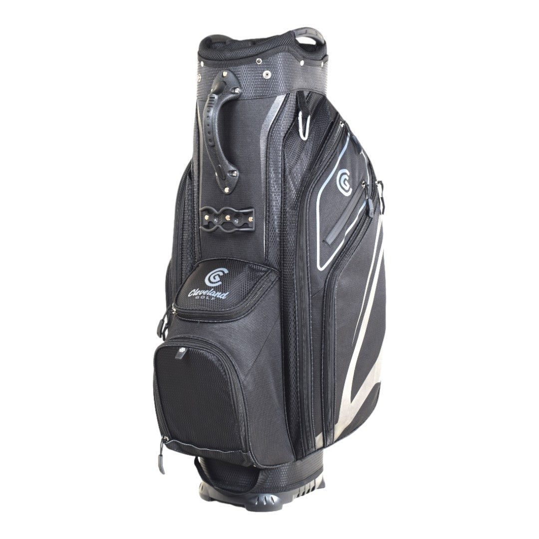 The Cleveland Friday 3 Golf Cart Bag is perfect for any golfer looking for convenience and functionality on the course. With a 14 way top and full length dividers, this bag makes it easy to organize and access your clubs. The velour lined valuables pocket and water resistant zipper keep your items safe, while the cooler pocket keeps your drinks cool. Stay prepared with the Cleveland Friday 3 Golf Cart Bag.