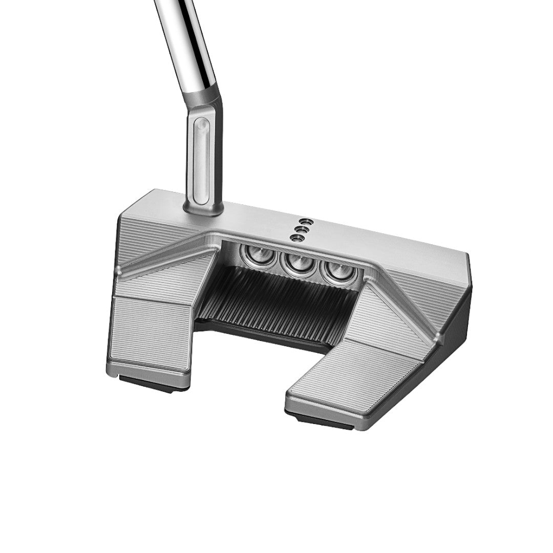 Crafted with expertise and precision, the Scotty Cameron 2024 Phantom 5.5 Golf Putter is thoughtfully designed for compact mallet players seeking a blade-like, smooth feel. With its refined I-beam jet neck configuration, trusted by the finest players on tour, this putter offers unparalleled performance. The one-piece body, meticulously milled from 303 stainless steel, incorporates a new dual-milled solid face and a lightweight aluminium sole plate for optimal craftsmanship. The addition of new milled topline sight dots in translucent smoke enhances alignment, while custom stainless steel sole weights provide balance, higher MOI, stability, and forgiveness. Through a careful distribution of weight and a perfect blend of materials, this putter offers the stability of a mallet with the precise feel of a blade.