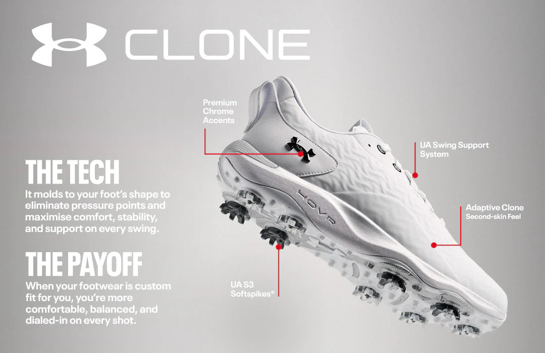 The Under Armour Drive Pro Clone Golf Shoe molds to your foot's shape to elimniate pressure points and maximise comfort