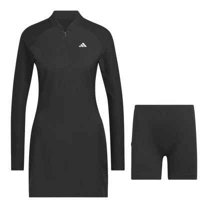Look your best on the golf course in this black adidas Ladies Long Sleeve Golf Dress. Designed to reach the knees, this dress features a half-zip closure and detached shorts to reduce restrictions for an easy backswing and follow-through. The regular fit ensures maximum comfort and mobility.