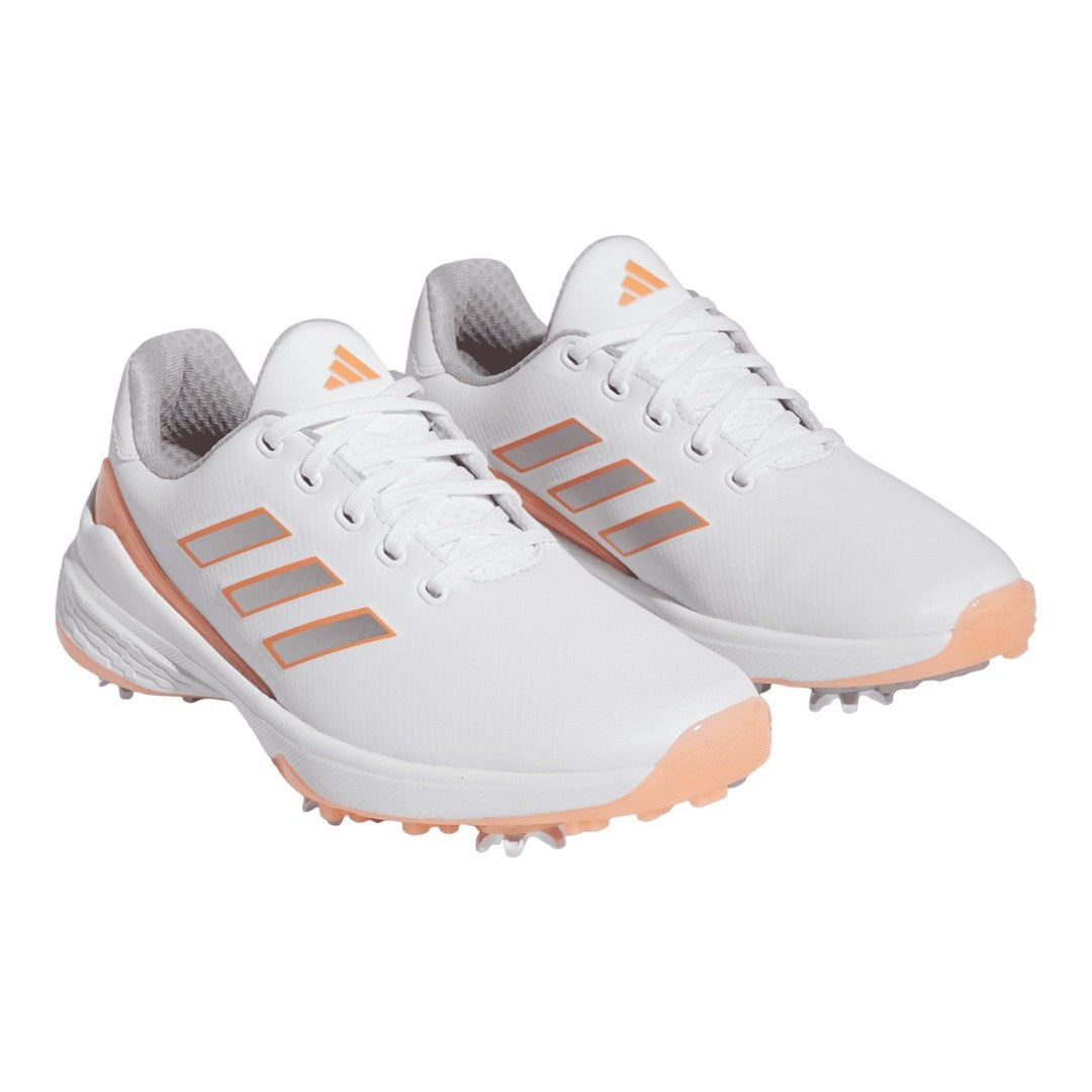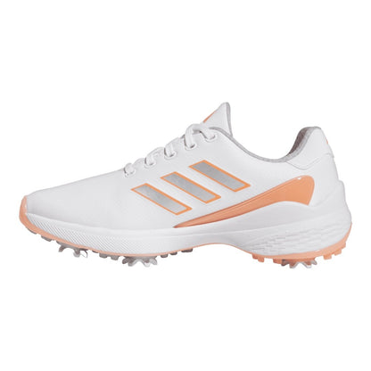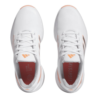 adidas Ladies ZG23 Lightstrike Golf Shoes GZ2176 | Cloud White/Silver Metallic/Coral Fusion
