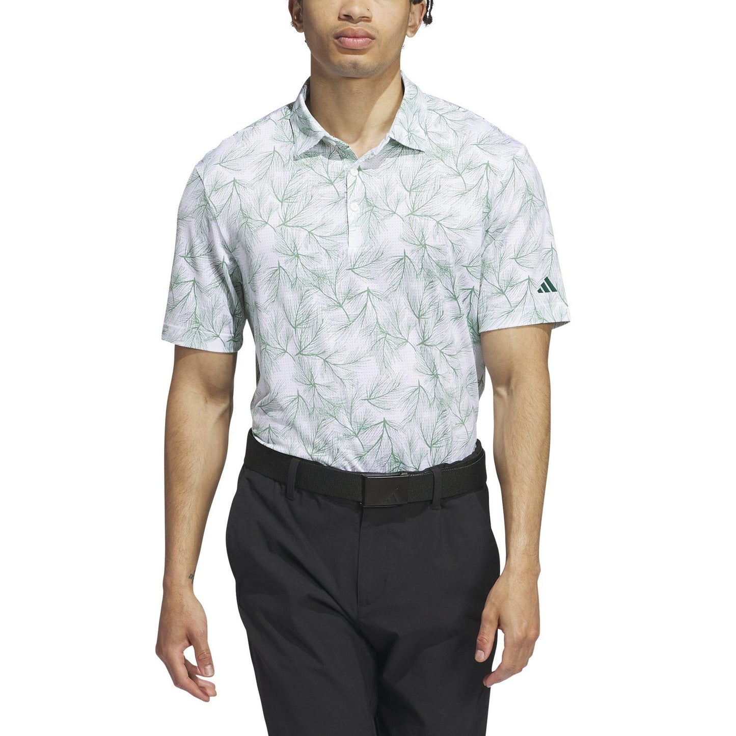 adidas Ultimate365 Mesh Print Golf Polo Shirt IT0157 | White/Preloved Green