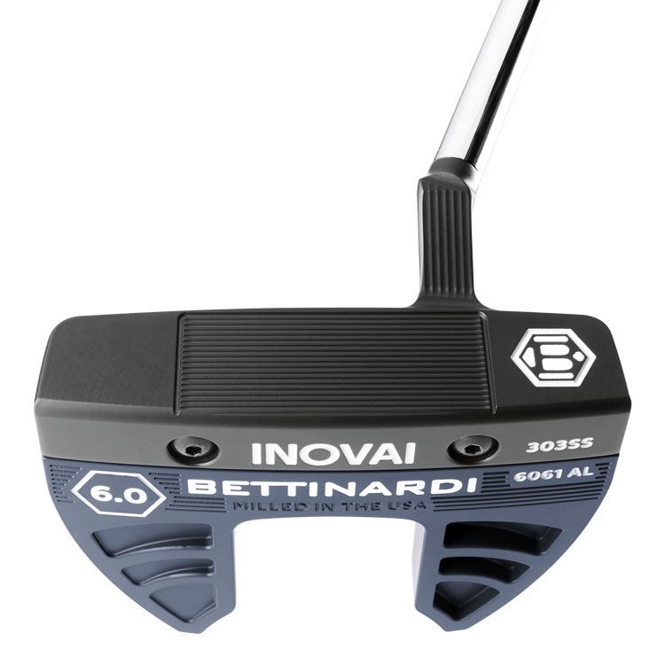 Experience ultimate performance on the green with the Bettinardi INOVAI Slant Golf Putter. The 303 Stainless Steel front piece boasts a bold Midnight Armor finish while the 6061 Military-Grade Aluminum back piece features a durable Titan Gray finish. Enjoy optimal visual cues for the perfect putt every time.
