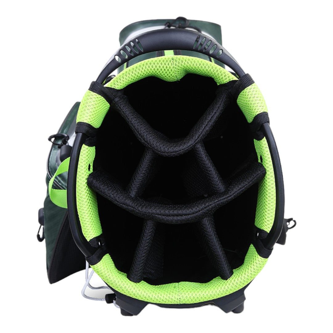 The Big Max Aqua Eight G Golf Stand Bag 3555L is designed for ultimate convenience and comfort on the course. With a fully waterproof and seam sealed construction, air channel straps, and 5 waterproof pockets, your gear will stay dry and secure. The 7-way top and full length divider make organizing your clubs a breeze, while the Ultra lightweight design and Leg Lock System make it easy to transport. Plus, with features like a cooler pocket, glove and towel holder, and umbrella holder, you'll have everything you need within reach.