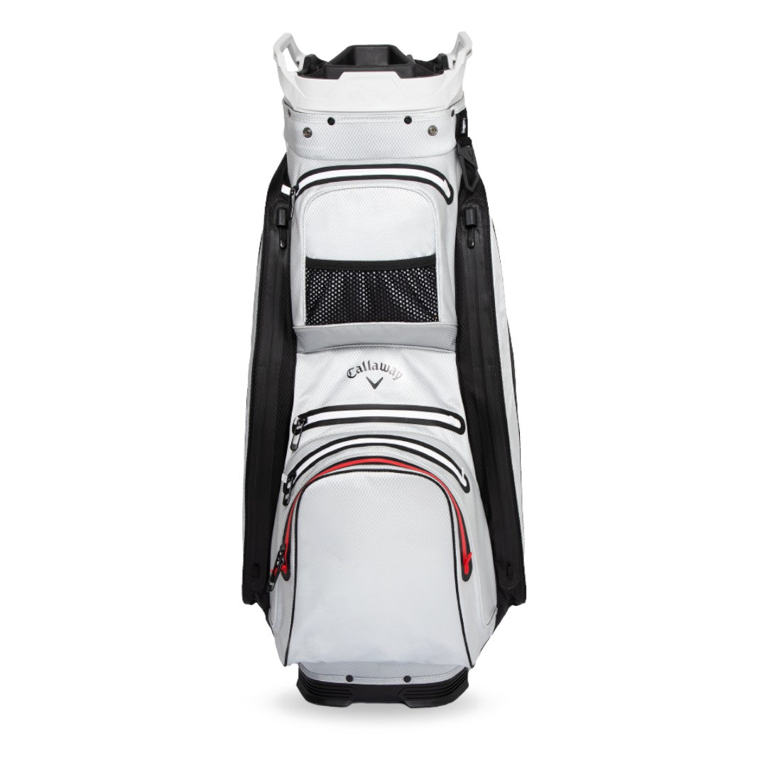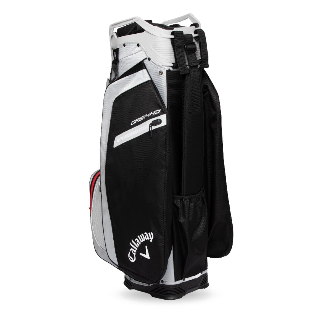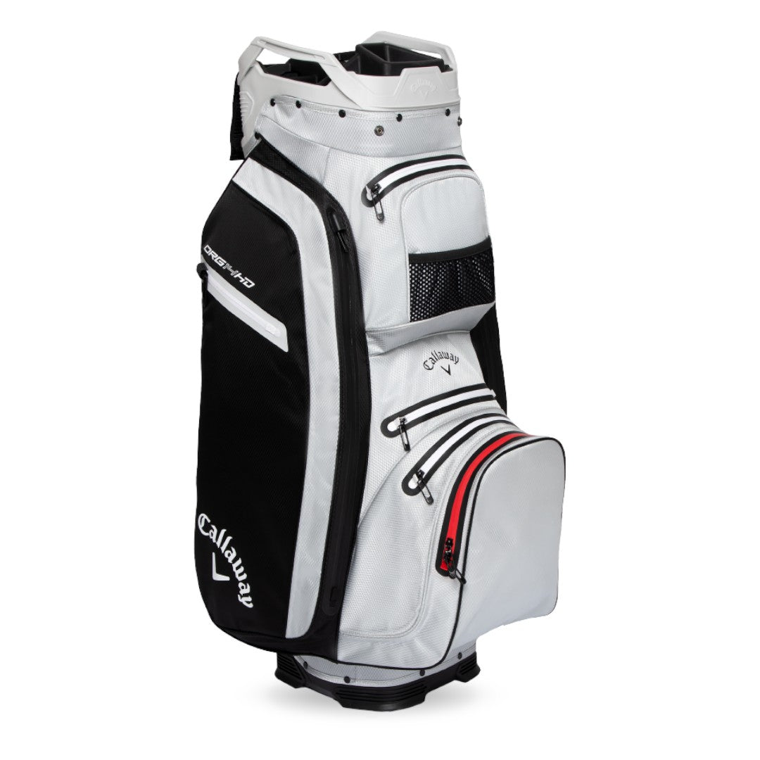 Experience premium organization and weatherproof performance with the Callaway Org 14 HD Cart Bag. The 14-way Shaft Shield rubberized dividers and LowRider trolley compatibility provide effortless club management and stability. Crafted with 10k waterproof fabric and fully seam-sealed construction, it protects your essentials in all conditions. With 10 pockets, including a backlined waterproof valuables pocket and insulated cooler pocket, this lightweight bag is perfect for any golfer.