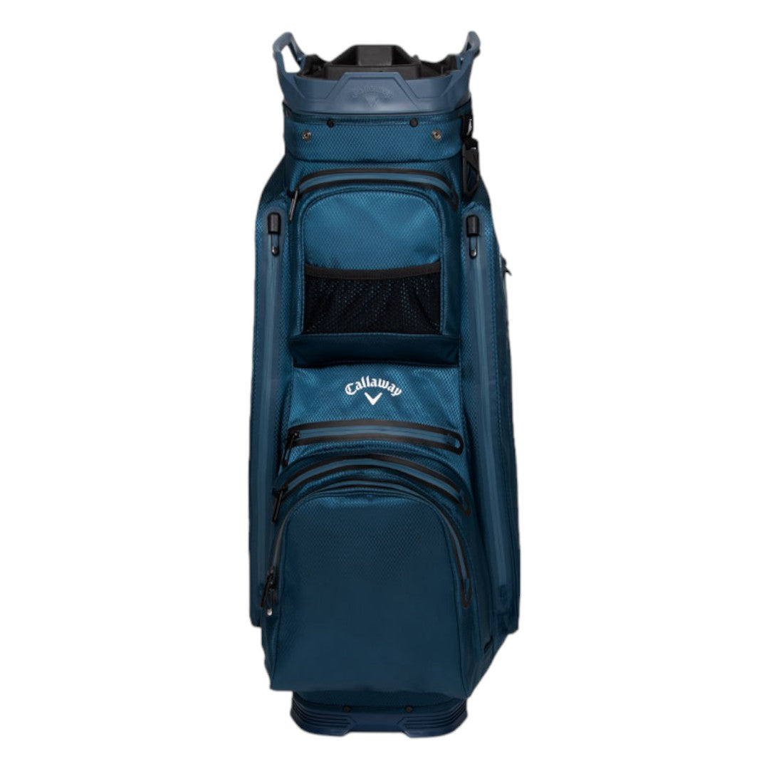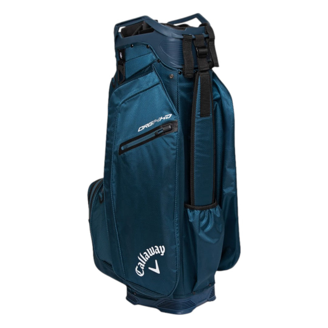 Experience premium organization and weatherproof performance with the Callaway Org 14 HD Cart Bag. The 14-way Shaft Shield rubberized dividers and LowRider trolley compatibility provide effortless club management and stability. Crafted with 10k waterproof fabric and fully seam-sealed construction, it protects your essentials in all conditions. With 10 pockets, including a backlined waterproof valuables pocket and insulated cooler pocket, this lightweight bag is perfect for any golfer.