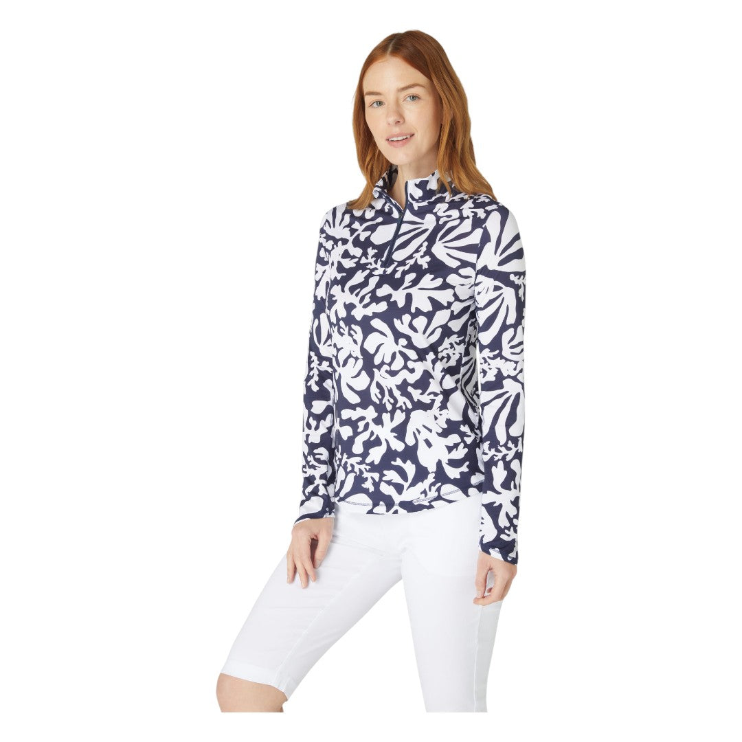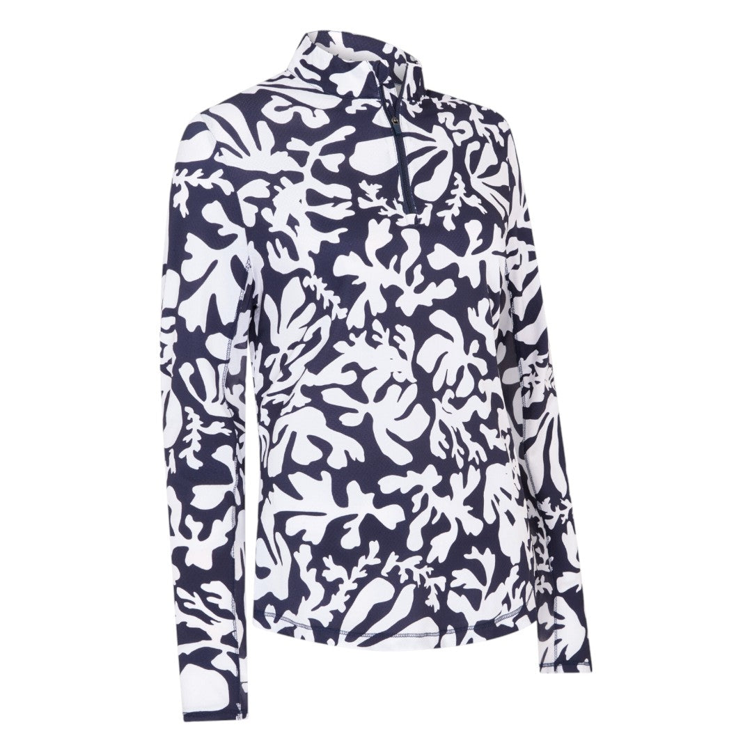 Callaway Ladies Abstract Floral Sun Protection Golf Top CGKSF400 | Peacoat 410