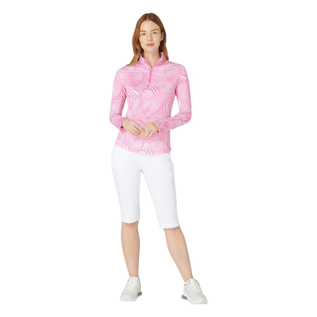 Callaway Ladies Stencil Floral Sun Protection Golf Top CGKSF300 | Cheeky Pink 674
