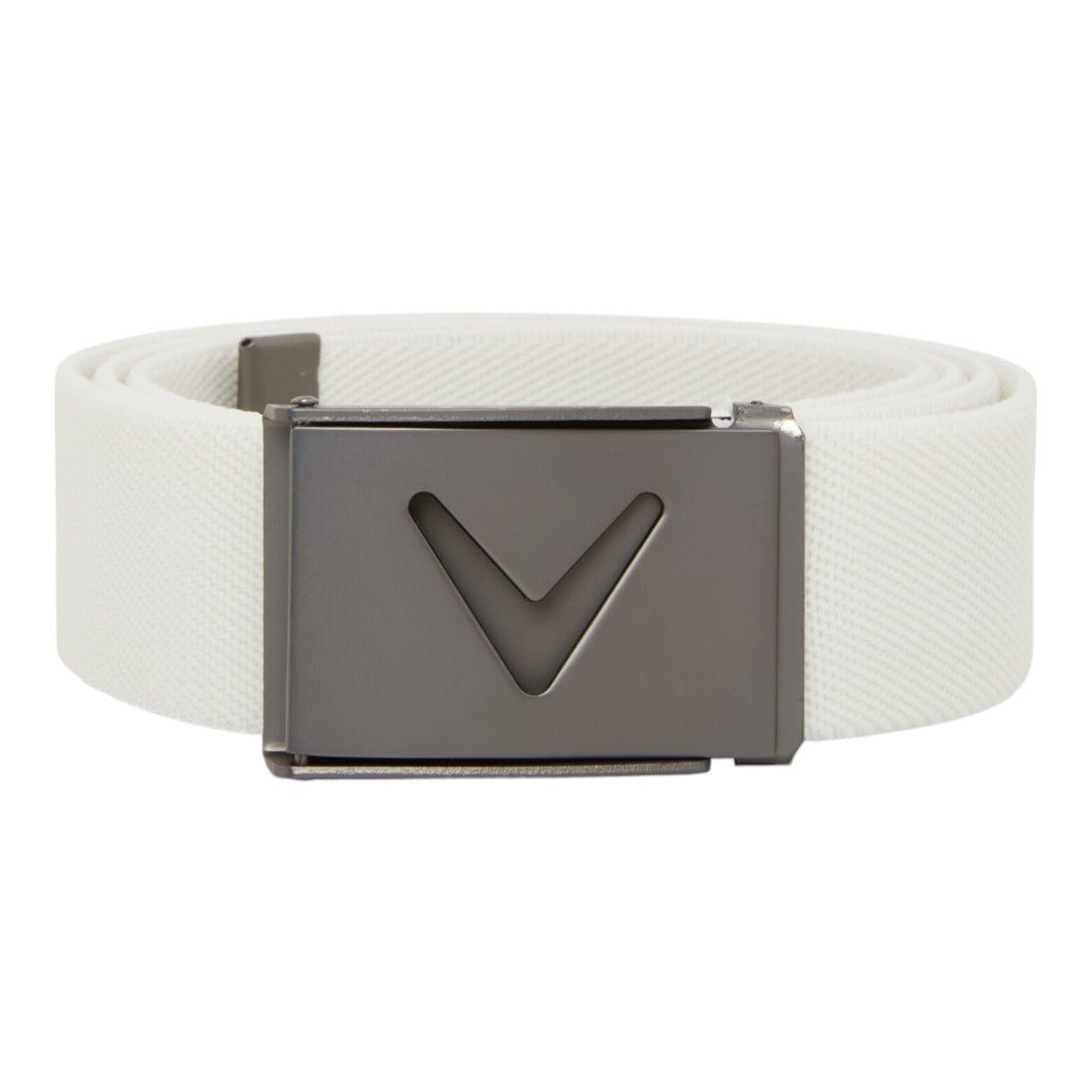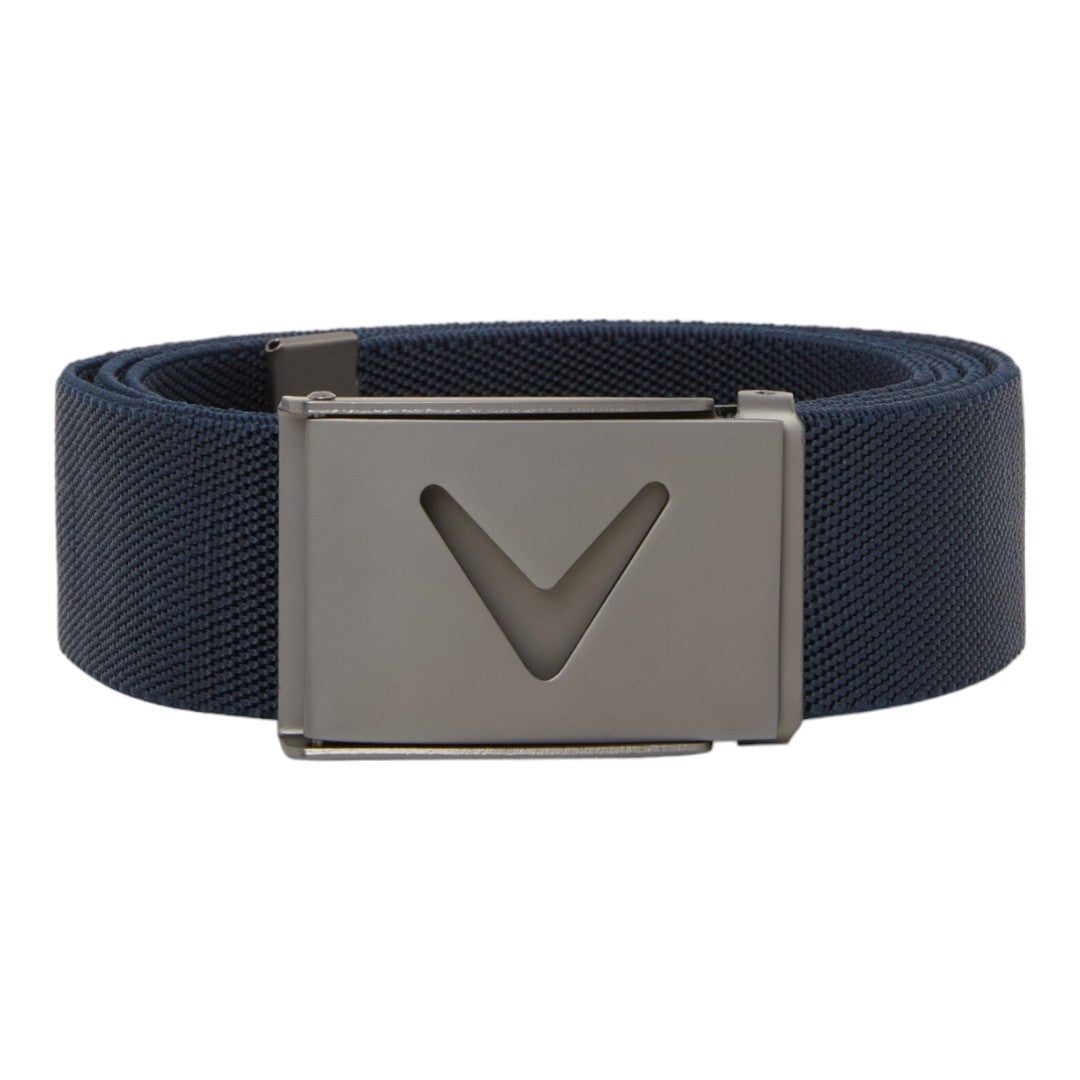 Upgrade your golf look with the Callaway V-Logo Web Belt. Made with 78% Polypropylene, 15% Elastodiene, and 7% Polyester, this versatile belt is perfect for both on and off the course. The adjustable V-logo buckle adds a fashionable touch while ensuring a secure closure. Elevate your style with this solid web golf belt.