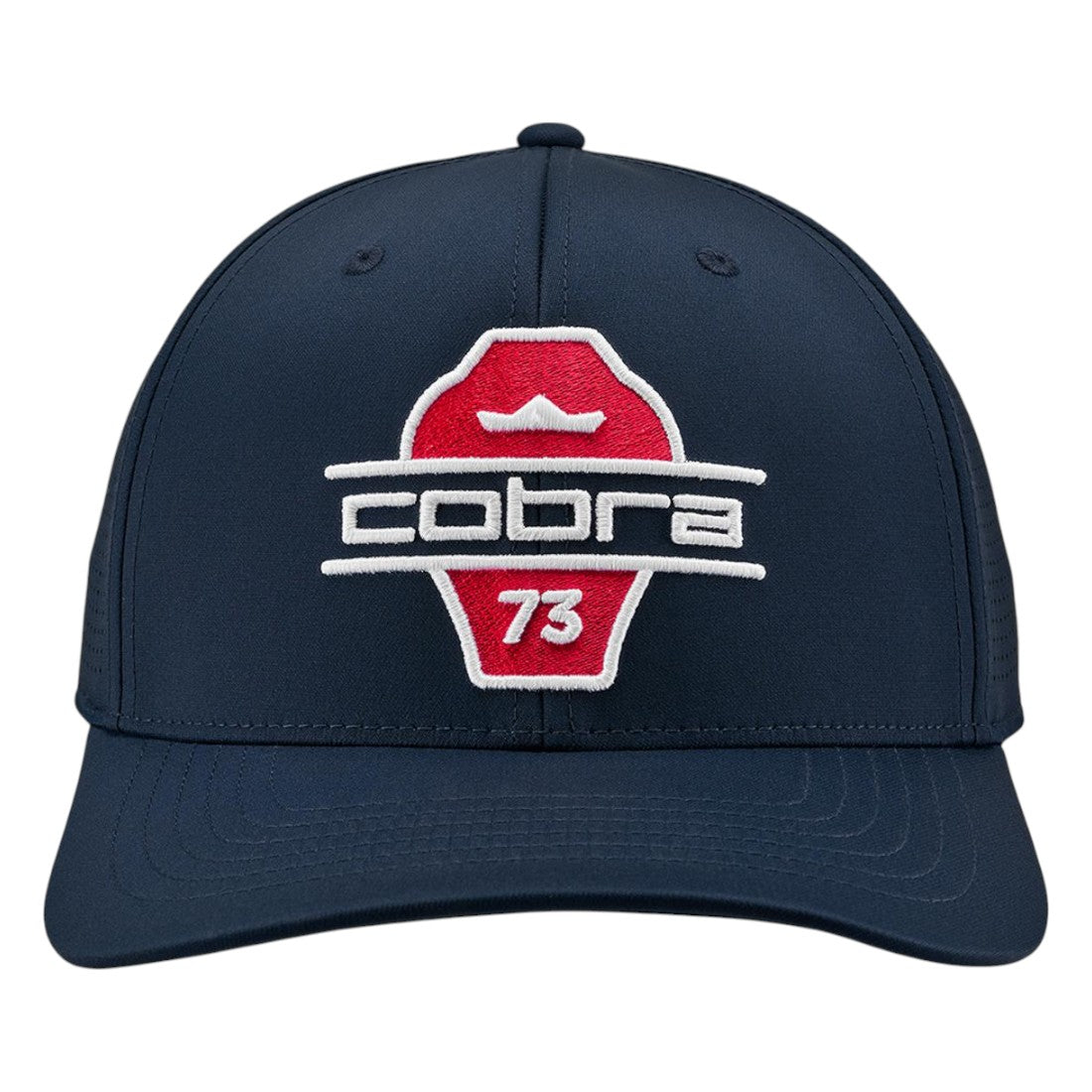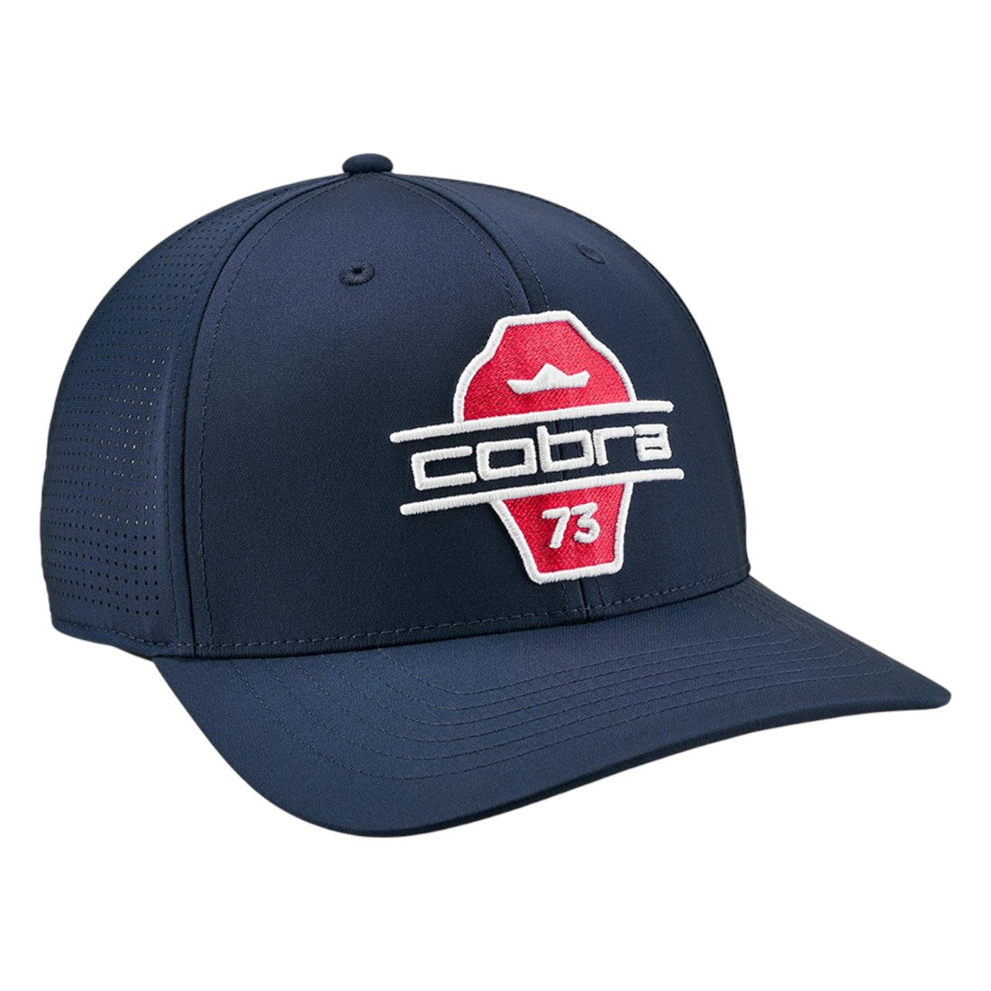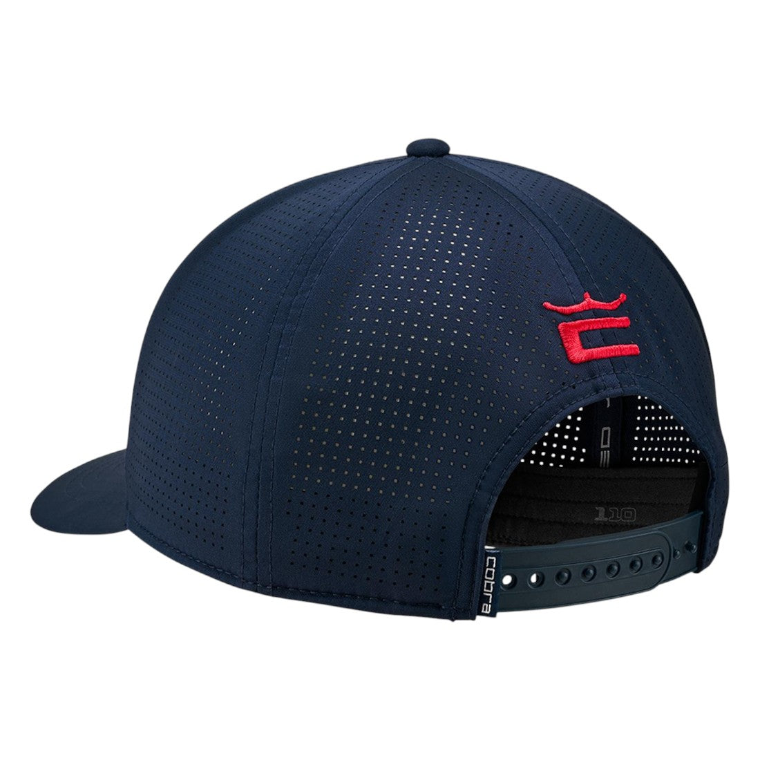 Enhance your golfing experience with the Cobra Split Tour Golf Cap. The adjustable back closure and high ventilation mesh provide comfort and breathability while the minimalist, plain design and pre-curved visor add a touch of style. Represent Cobra with the front wordmark.