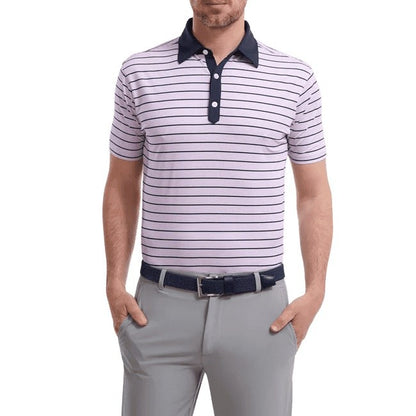 The FootJoy Accented Stripe Golf Shirt is made from high-performance FJ ProDry Stretch Lisle fabric. The all over stripe pattern features colour coordination on the rear yoke and FJ logo, keeping you dry while you play. Moisture wicking technology draws moisture away from the body to keep you cool, while SPF 30 UV protection keeps you safe in the sun.