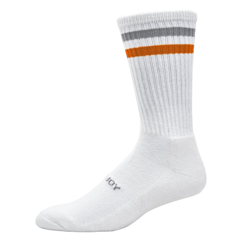 Featuring a sleek stripe design, Footjoy ComfortSof Crew Golf Socks provide unparalleled comfort and durability. The smooth and soft cotton blend, combined with a fully cushioned sole, ensures all-day comfort on the course. With its advanced Comfort Seam toe enclosure, these socks offer a perfect fit for the modern golfer.