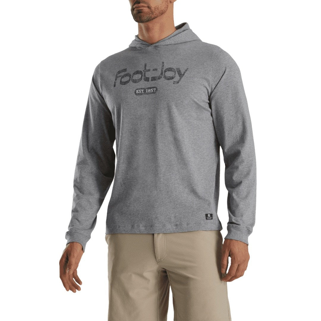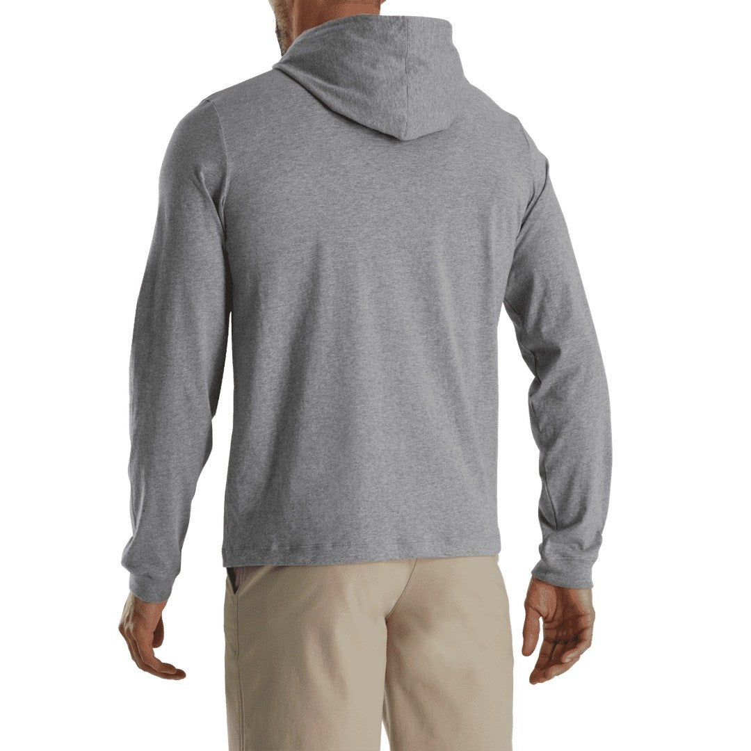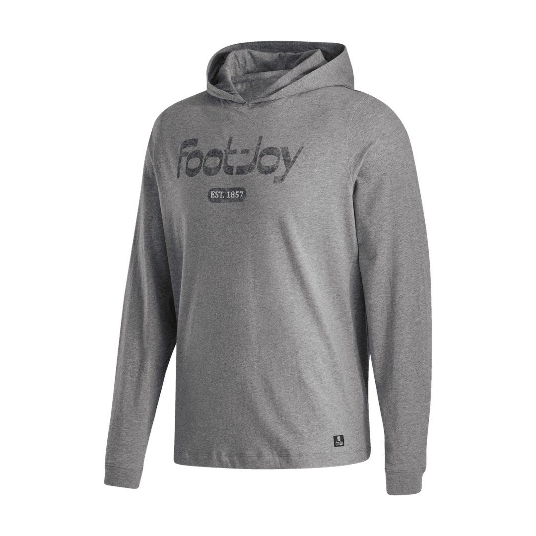 The FootJoy Heritage Hooded Golf Sweater offers a style and fit distinct from others on the market. A supremely comfortable cotton & polyester blend, this versatile garment is an ideal choice for both on and off the course. A modified version of the iconic FJ logo adorns the center chest, and signifies that this hoodie is part of the Heritage collection.