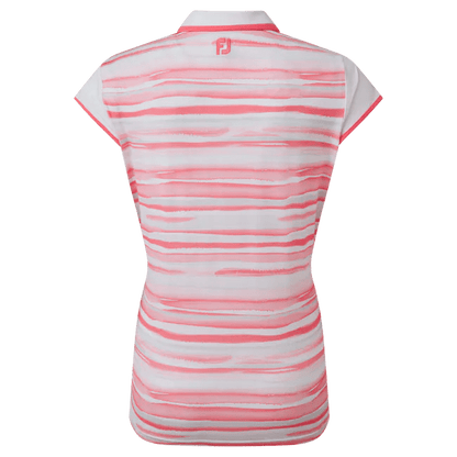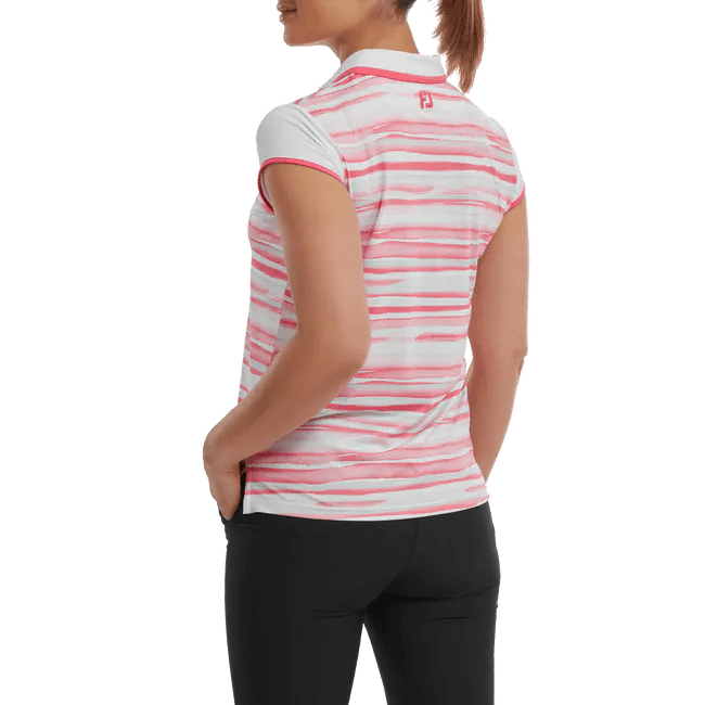 The FootJoy Ladies Cap Sleeve Colour Block Lisle Golf Polo Shirt features contemporary patterns & colours to deliver style while performance fabrics help to keep you cool & dry on the golf course.