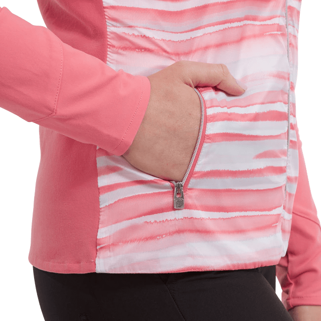 The FootJoy Ladies Hybrid Statement Golf Jacket is a versatile mid layer that allows you to adapt to the changing weather. Four-way stretch helps to keep your core warm without restricting your movement so you can unleash your maximum potential on the golf course.