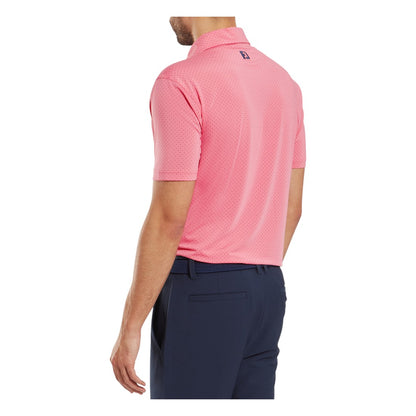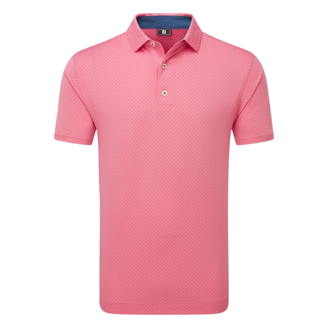 FootJoy Stretch Lisle Dot Print Golf Polo Shirt 34125 | Pink Lemonade/Dark Denim