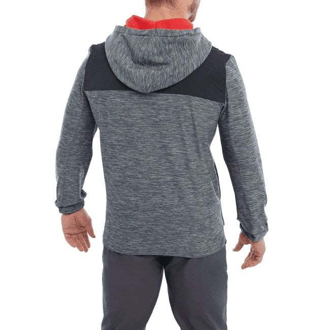 The FootJoy Thermal Golf Hoodie is designed with a stretch space dye jersey fabric that moves with your body. It's got moisture wicking technology that pulls moisture away from the skin to keep you dry in any conditions and microfleece lined hand pockets for extra warmth.