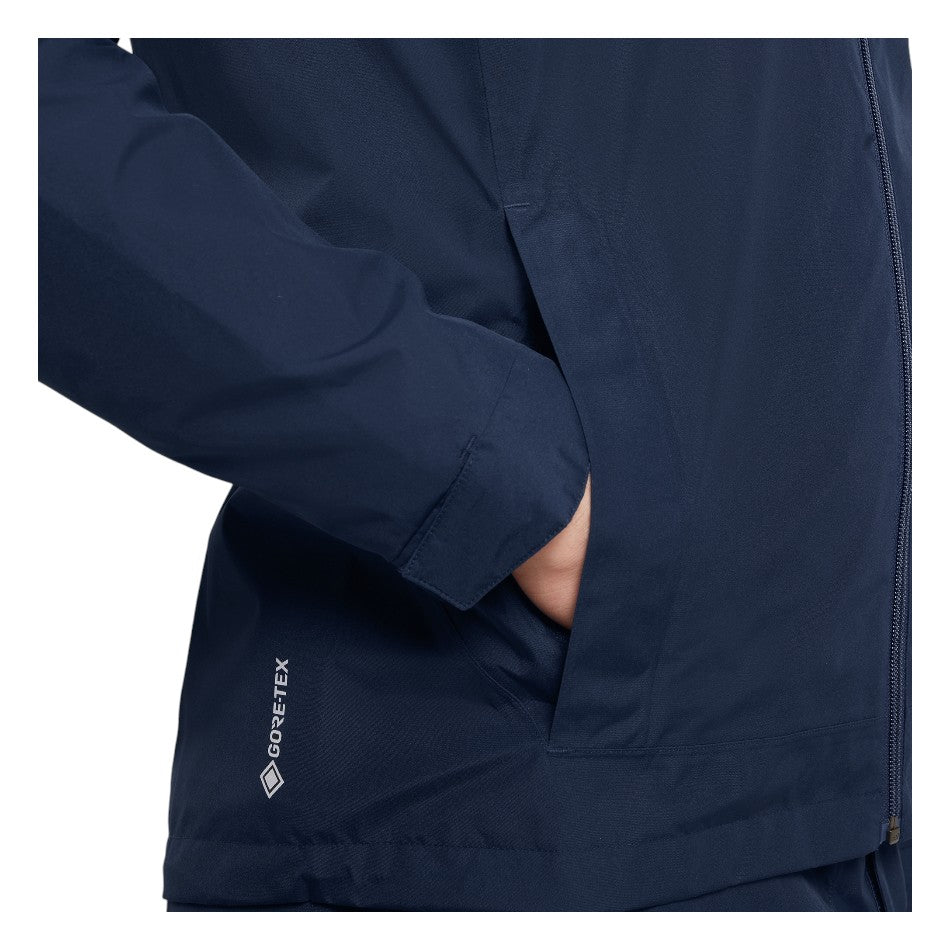 The Aston golf jacket is a top-of-the-line, all-weather outer layer designed for golfers, featured in Galvin Green's award-winning DRYVR™ collection. Made from recycled polyester and GORE-TEX ePE fabric, it is completely waterproof, windproof, and highly breathable. The two-layer GORE-TEX construction and lightweight mesh lining provide exceptional comfort and warmth, while the PFAS-free water repellent treatment ensures protection in challenging weather conditions.