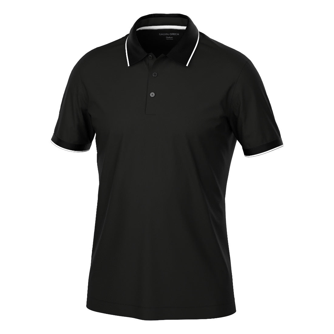 This golf polo shirt features lightweight, breathable fabric with UV protection and quick dry technology. With a stretch fit and soft feel, the Galvin Green Marty shirt allows for ultimate comfort and movement on the golf course. Made of 97% polyester and 3% spandex, with a knitted collar and cuffs.