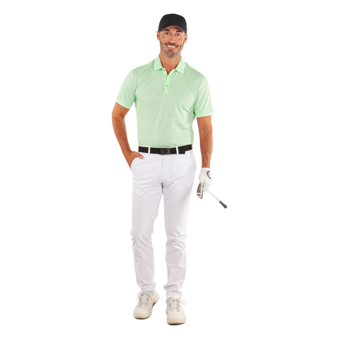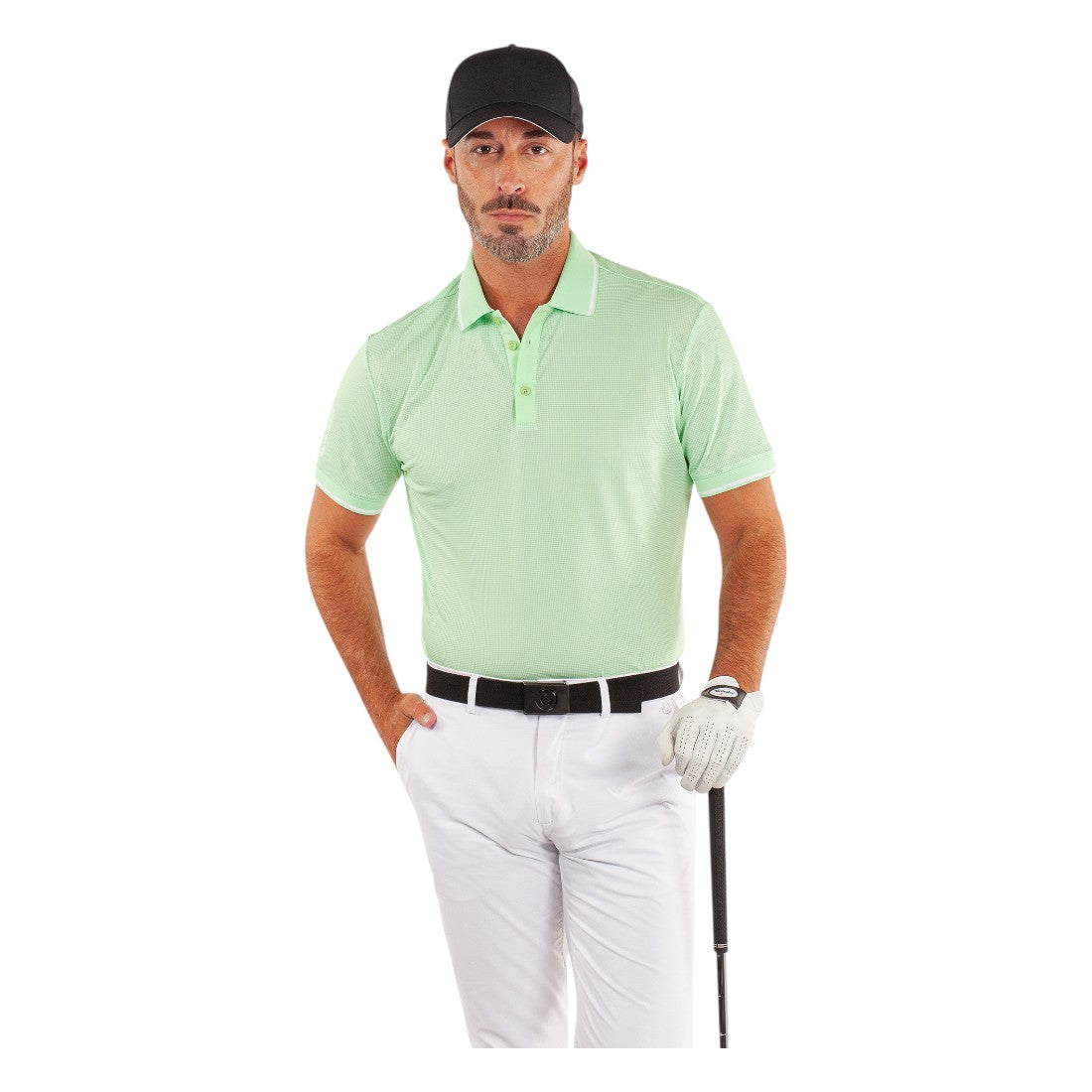 Introducing the Galvin Green Miller Golf Polo Shirt. Made with breathable VENTIL8™ PLUS fabric, this shirt provides quick-drying and UV protection (20+) properties. The stretch fabric offers comfort and the knitted collar and cuffs add a touch of style. Perfect for your next golf game.