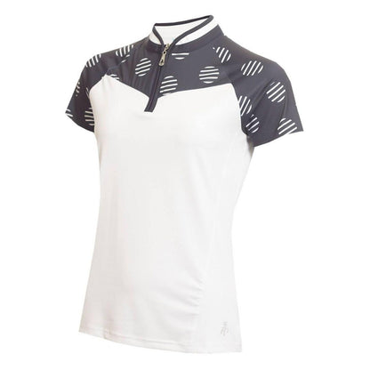 The Green Lamb Ladies Edita Golf Polo follows a stylish and sporty design. The white-navy polo uses Tech performance fabric to provide golfers with a breathable, moisture wicking garment. This product features a front half zip opening, finished with a Green Lamb Swarovski crystal zip pull. To keep you cool and dry while on the course, Quick dry performance fabrication has been used. If you are looking for a lightweight, modern polo then the Edita Golf Polo is ideal.