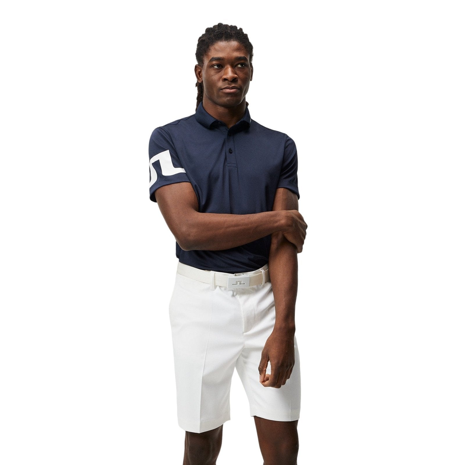 The J.Lindeberg Heath Golf Polo Shirt combines sleek design with advanced performance features. Crafted from 100% polyester, its moisture-wicking, fast-drying 4-way stretch fabric ensures comfort and freedom of movement throughout your game. Signature stripe sleeve graphics and subtle Bridge logos on the collar, back, and right sleeve add refined style. The ribbed collar with stand and three-button placket complete this expertly engineered polo, ideal for golfers seeking both function and sophistication on the course.