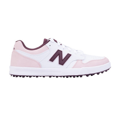 Elevate your golf game with the Ladies New Balance 480 SL Golf Shoes. Designed with inspiration from the Classic New Balance BB680 Basketball model, these shoes boast a synthetic waterproof PU upper for durability on the course. The smart rubber spikeless outsole features pressure mapping colors to enhance performance, while the 15mm PU insole and CUSH+® technology provide maximum comfort during every swing.