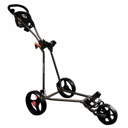 The Longridge Ezeglide Cruiser Golf Trolley features a convenient push design and 10 inch ball bearing wheels, it offers a smooth, effortless glide across the course to minimize strain and prevent injuries. The trolley also boasts an adjustable bag bracket and an L-shaped base for secure equipment support. A footbrake ensures stability on uneven terrain, while added features like a soft grip handle and drinks holder provide added comfort. Made with high-quality materials, the EzeGlide trolley is designed for long-lasting use round after round.