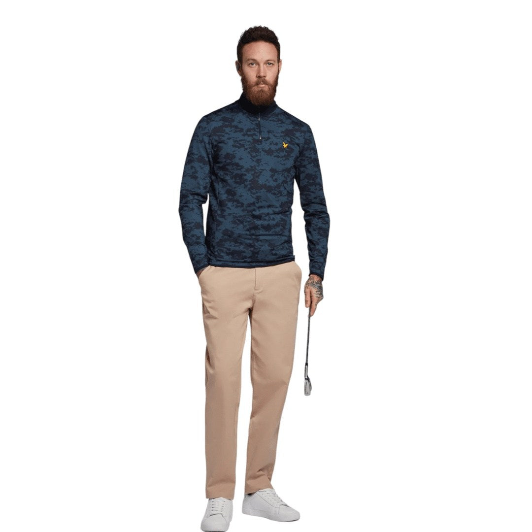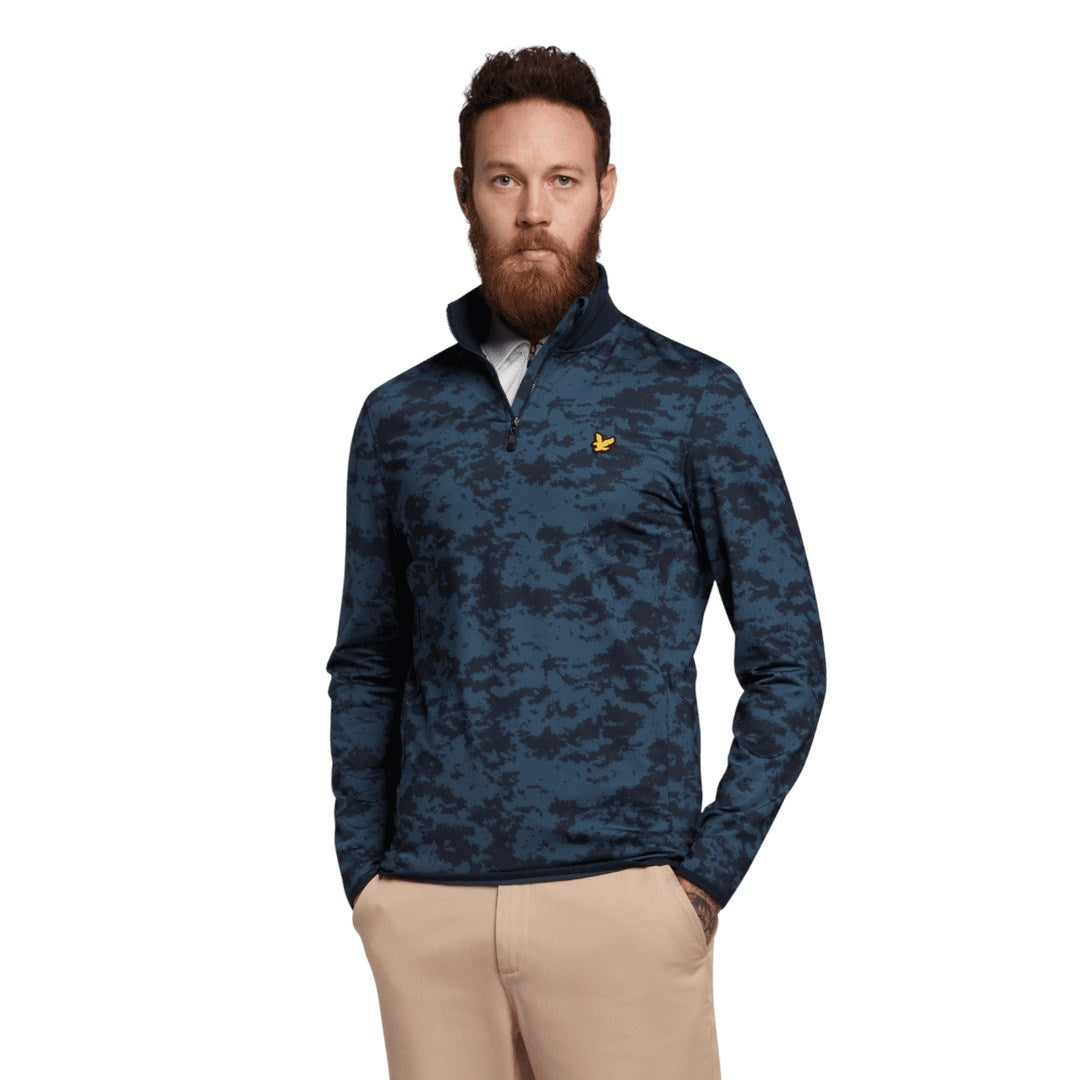 Introducing the Lyle & Scott Seafoam 1/4-Zip Golf Pullover. Crafted from a lightweight yet durable blend of polyester and elastane, this mid layer offers superior mobility on the course while its heavy duty front zip and ribbed neck and cuffs provide a secure fit. Make a statement with its distinctive pattern inspired by Britain's coastline. Swing in style with the Golden Eagle signature.