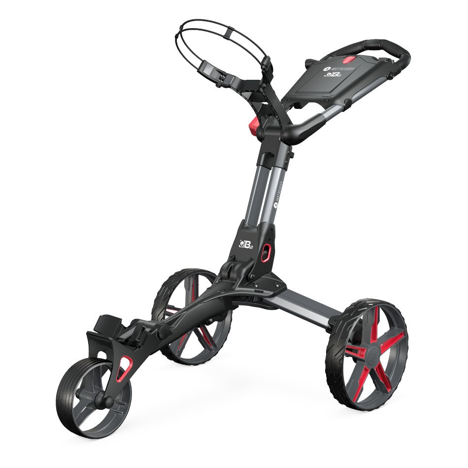 The QB2 push cart, with its compact and easy-to-fold design, offers a multitude of features, such as frictionless wheels, an adjustable handle, and a foot-operated parking brake. The QB2 push cart also boasts a convenient compact folded size, advanced 2-step folding mechanism, and an automatic folding front wheel. The ergonomic handle ensures effortless pushing, while the oversize wheels provide a smooth ride. Plus, it is EASILOCK® compatible for added convenience.