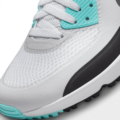 The Nike Air Max 90G Golf Shoe is a stitch-for-stitch reconstruction of the classic Air Max 90 but it has been elevated to modern golf standards with iconic technologies. The integrated traction pattern across the sole provides unrivalled grip, drawing inspiration from the classic Air Max 90 sole but with some key traction points placed in contact areas of the sole for better grip and better swing.