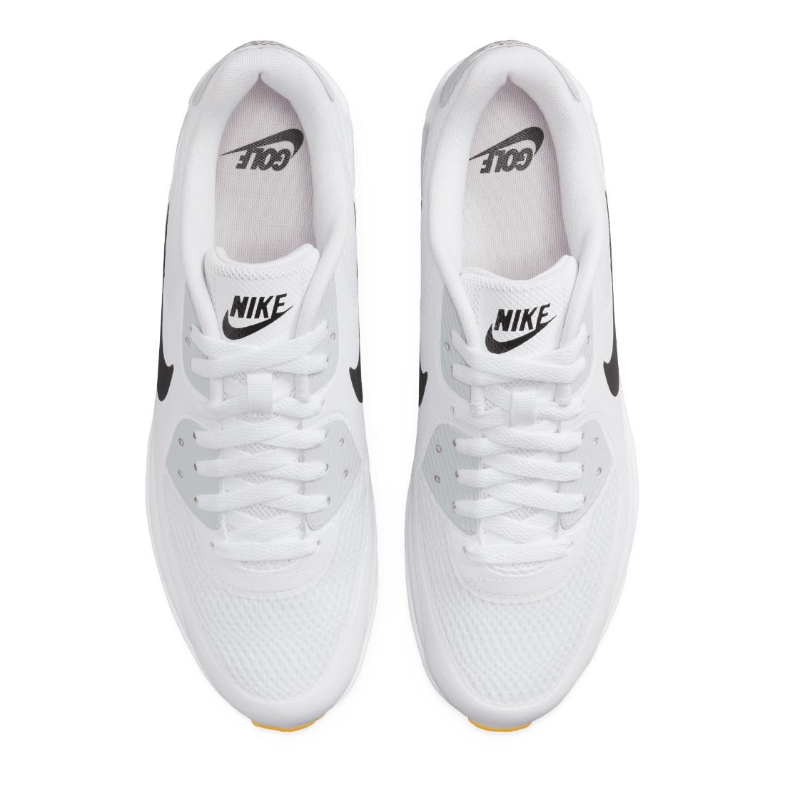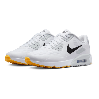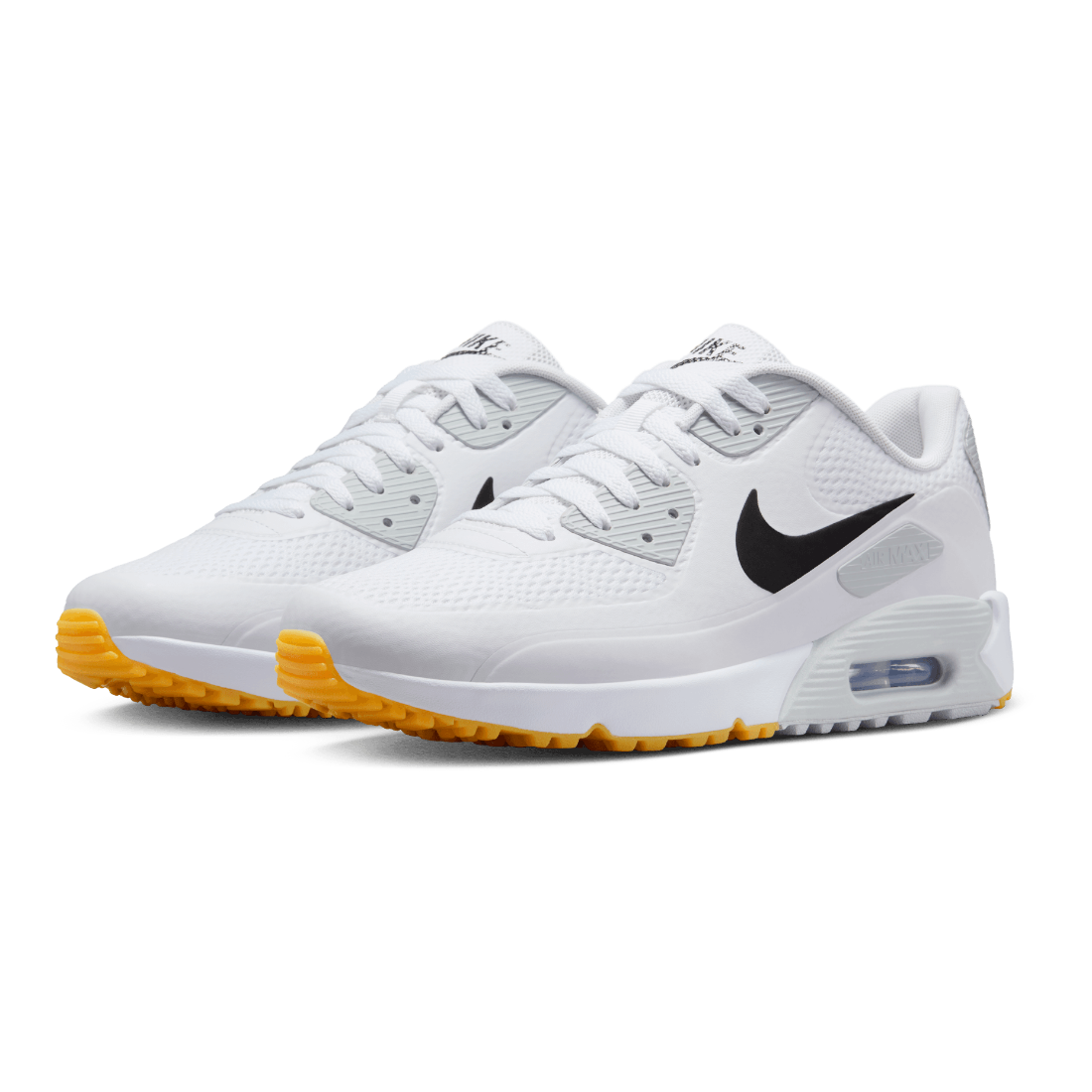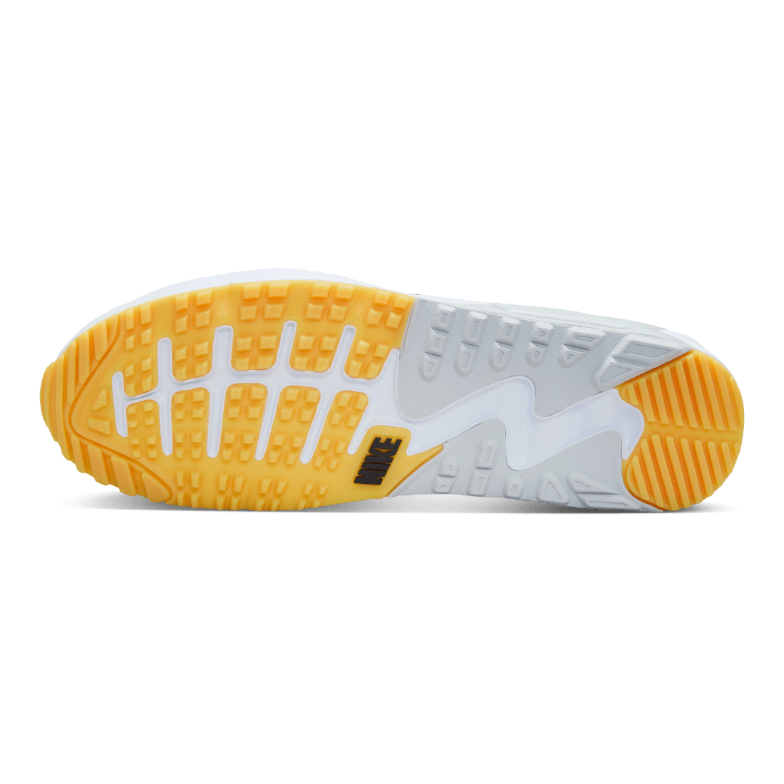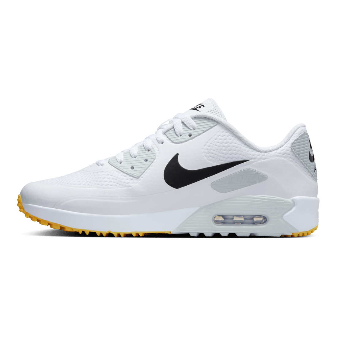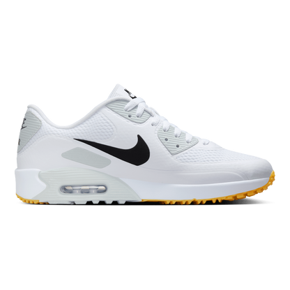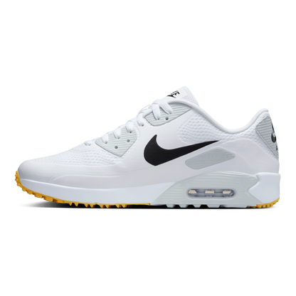 Nike's Air Max 90G Golf Shoes are a tried and true recreation of the original Nike Air Max 90 running shoes but updated with modern technologies to bring them to the course. Integrated traction and the thin 100% waterproof overlay keep your feet firmly on the ground while keeping them dry during unfavourable conditions. Men's Nike golf shoes like the Air Max 90G combine advanced performance with classic style, providing confidence both on and off the course. The stylish color palette and Nike branding bring style to any outfit you wear.