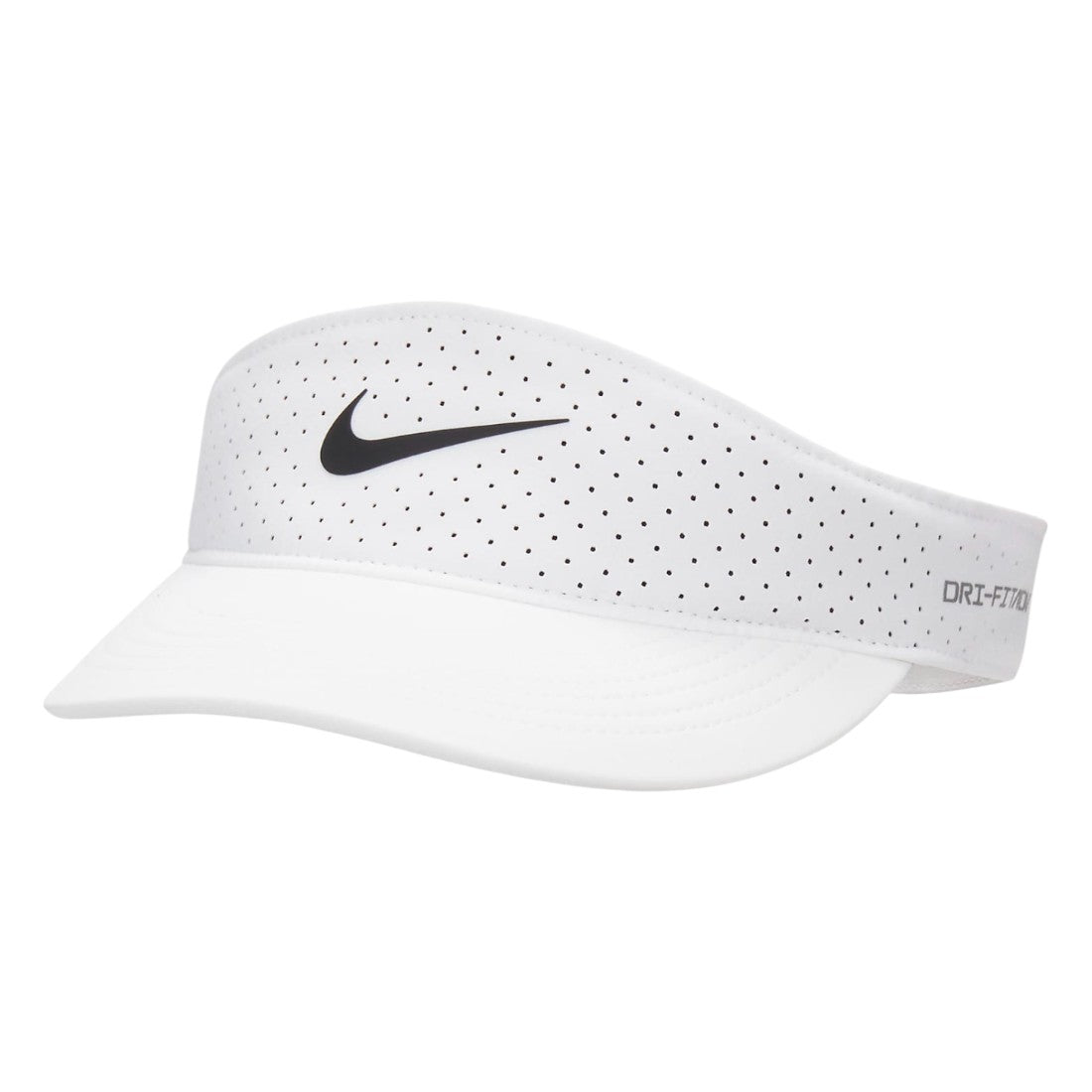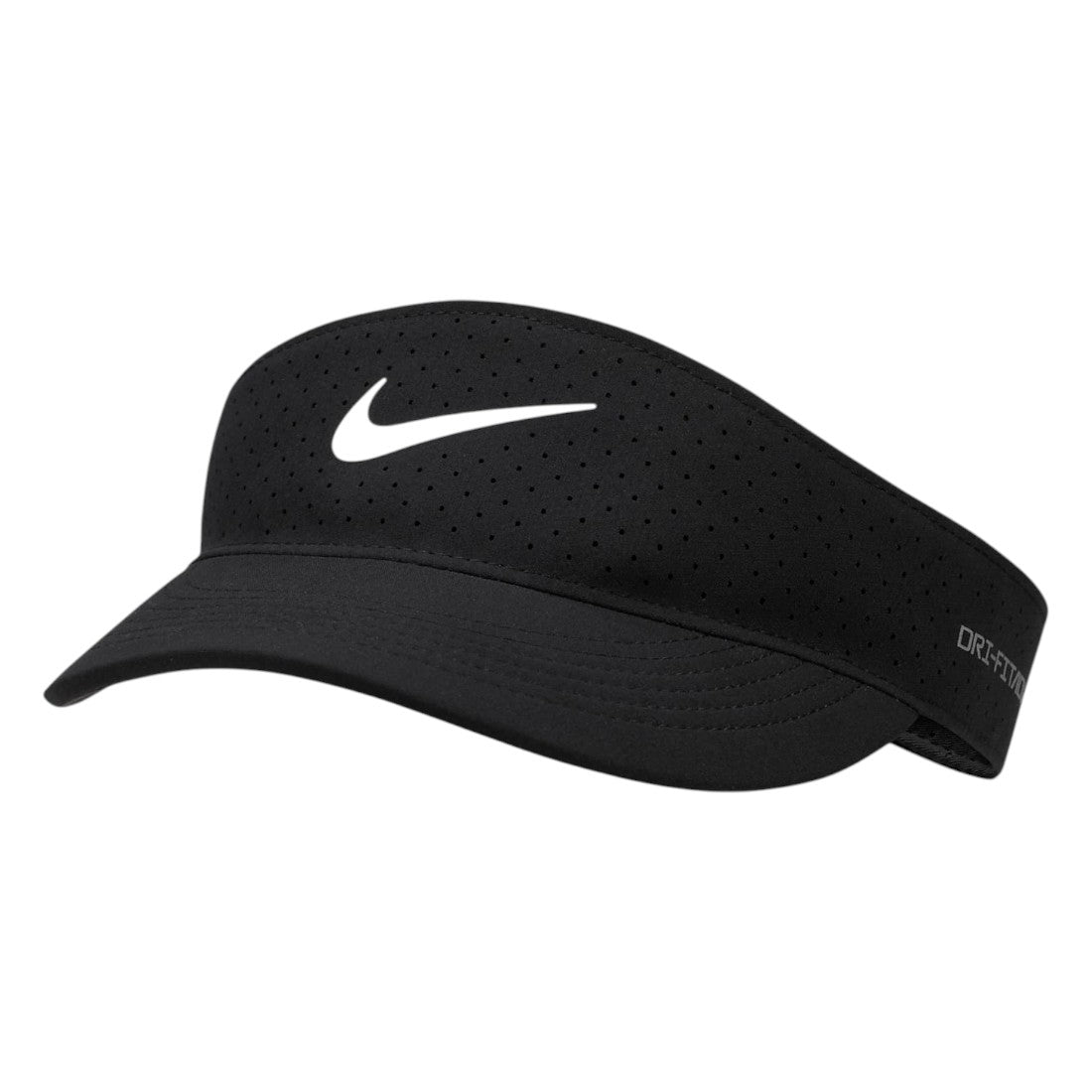 Upgrade your golf game with the Nike Dri-Fit ADV Ace Golf Visor. Featuring advanced moisture-wicking technology and an adjustable back strap, this visor will keep you dry and comfortable during your game. The shortened AeroBill design allows for breathability and reduced distractions, while the strategically placed vent holes and UV protection provide ultimate protection from the sun. Made with a perforated liner for added breathability.
