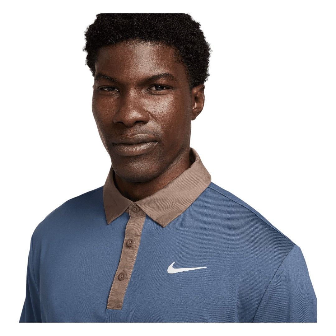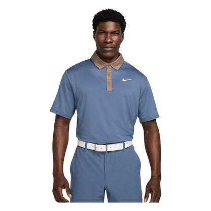 Nike Dri-Fit Tour Contrast Golf Polo Shirt FZ7501 | Diffused Blue/Mink Brown 491
