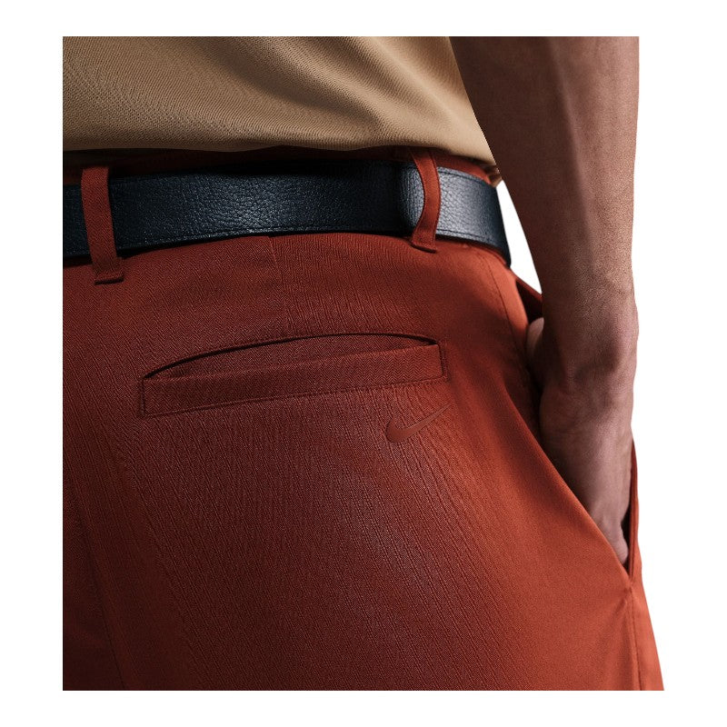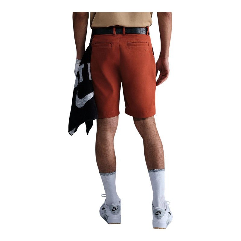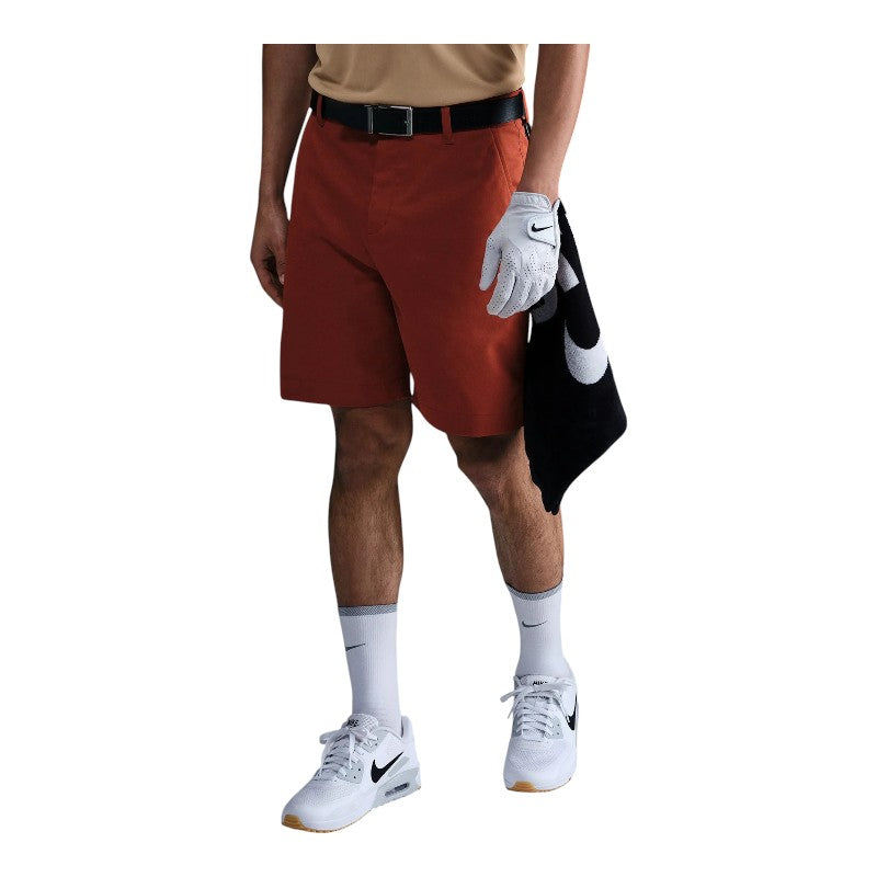 Engineered for performance, the Nike Tour Chino Golf Shorts feature stretch-woven fabric that enhances your swing while wicking away sweat. The water-repellent finish keeps you dry in changing conditions, while the elastic waistband with snap-hook-and-bar closure ensures a secure fit. Multiple mesh-lined pockets provide convenient storage for scorecards and golf essentials. With an 8" inseam and streamlined design, these polyester shorts deliver confidence from tee to green.