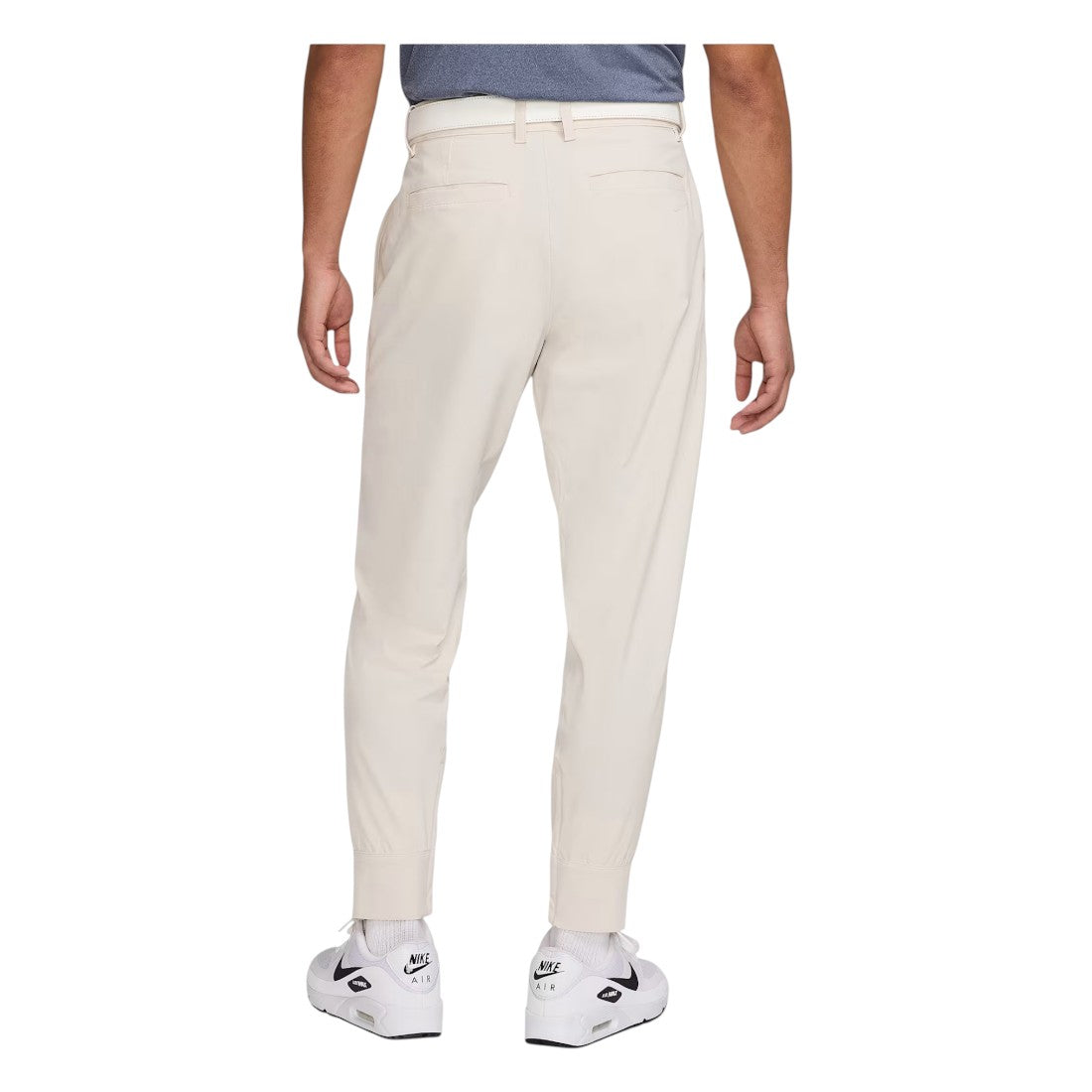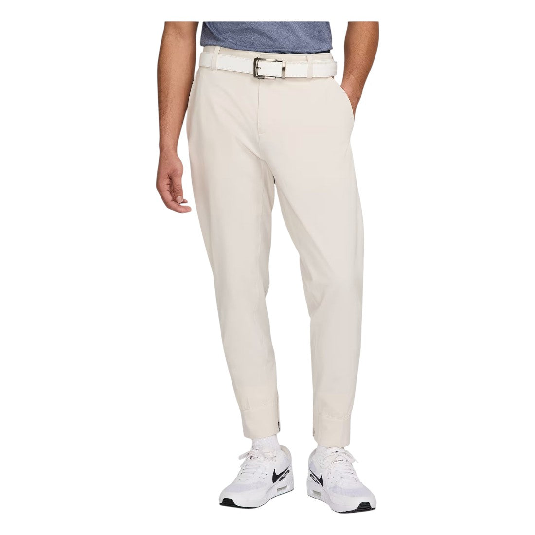 The Nike Tour Repel Golf Joggers combine performance technology with practical design for serious golfers. Featuring 4-way stretch-knit fabric that optimizes your swing mechanics while wicking moisture away from skin. The water-repellent finish ensures play continues in challenging conditions, while the secure elastic waistband with snap-hook-and-bar closure provides stability throughout your round. Multiple strategically placed pockets keep tees, scorecards and gloves accessible when you need them most. Perfect for transitioning from practice to play to post-round activities with technical performance and refined comfort.