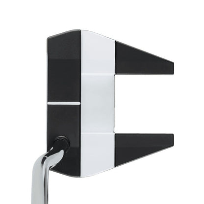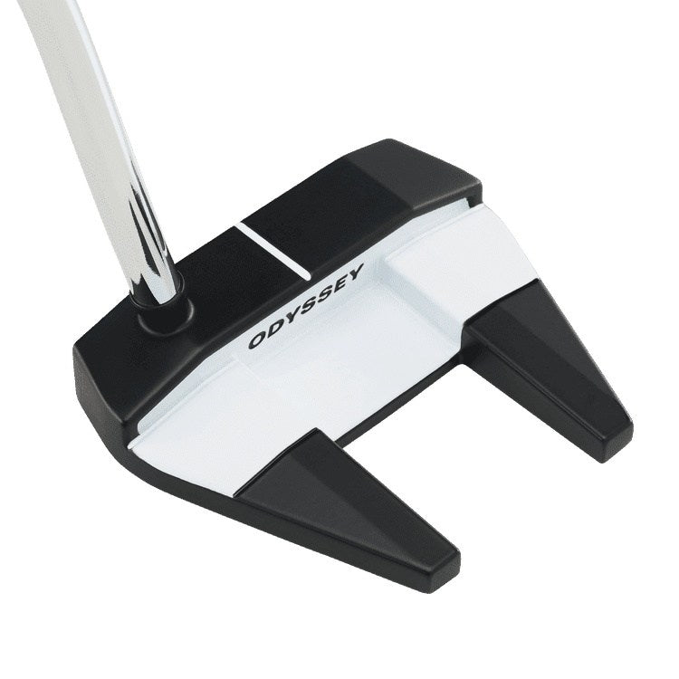 The Odyssey White Hot Versa Seven DB Putter is a double-bend, face-balanced mallet with a fang design. It is best suited for strokes with minimal arc and face rotation.