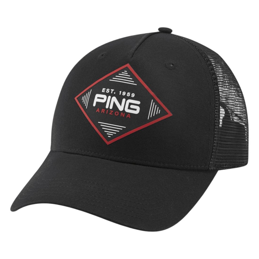 This PING Diamond Trucker Golf Cap features the PING wordmark on the front and an adjustable closure for a comfortable fit. The breathable mesh back design ensures maximum ventilation, making it perfect for long games on the golf course. With a standard curve brim, this cap offers both style and functionality for avid golfers.