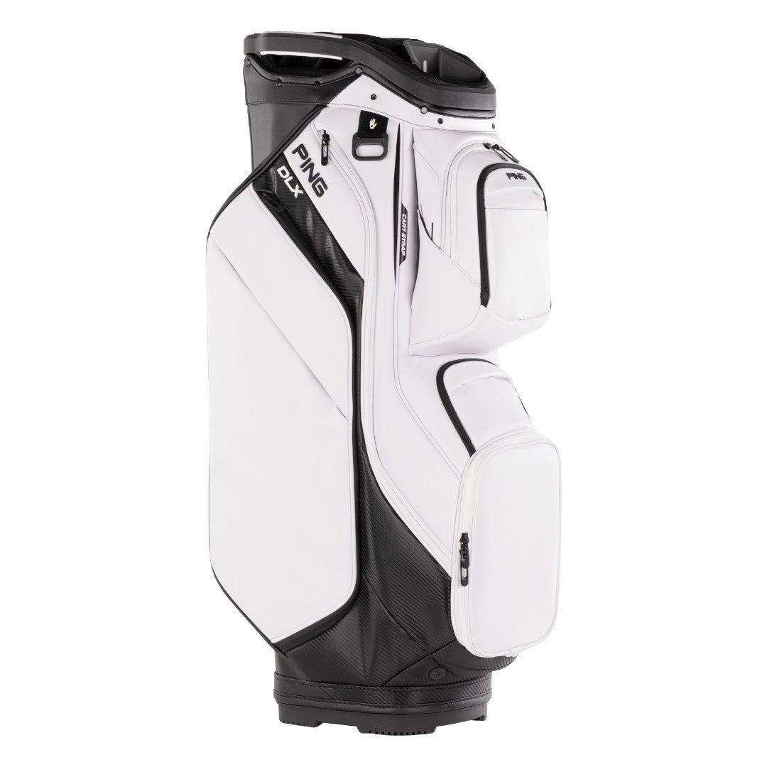 Introducing the Ping DLX 244 Golf Cart Bag – the ultimate bag for avid golfers. Boasting a reconfigured top with larger padded dividers, this versatile bag offers maximum organization and protection for your clubs. With 15 pockets and two deployable shoe pouches, you can easily carry all of your essentials on the course.