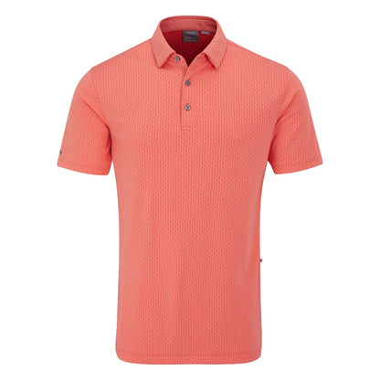 Introducing the Ping Hershel Golf Polo Shirt, made with 100% polyester and featuring a mini diamond jacquard design. Engineered for ultimate comfort, this polo shirt keeps you dry in any weather. Stay cool and focused on the course with moisture-moving technology.
