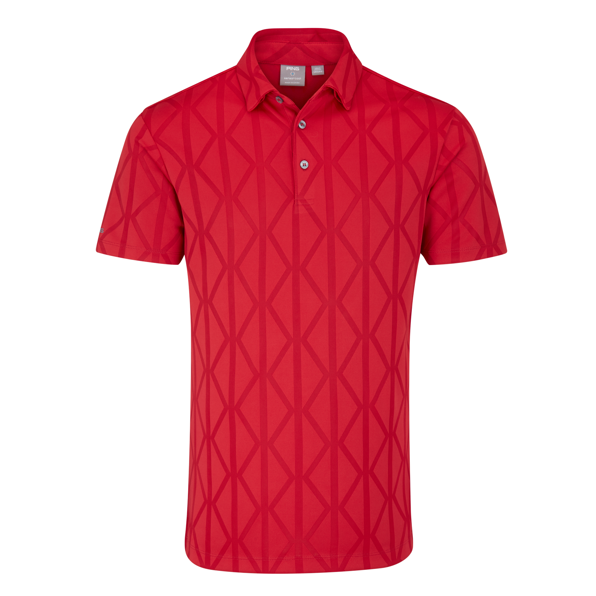 Take your golf game to the next level with the Ping Lenny Golf Polo Shirt P03664. This bold and stylish polo is designed for maximum comfort and performance, with moisture-wicking technology and a concealed button-down collar. The all-over triangular jacquard pattern adds texture and the PING Eye and Eye Mark logos provide a signature touch. Elevate your look and your game with this must-have polo.