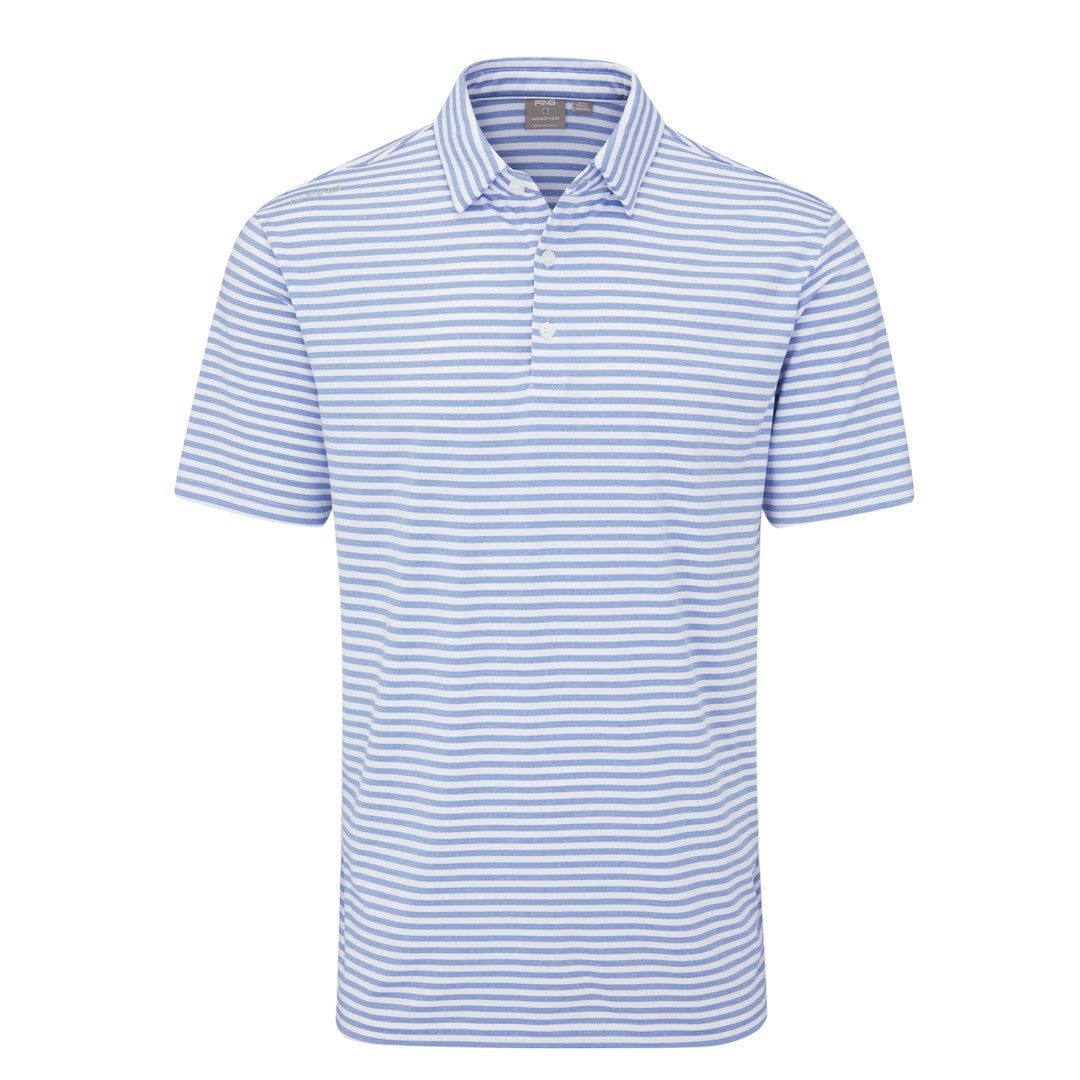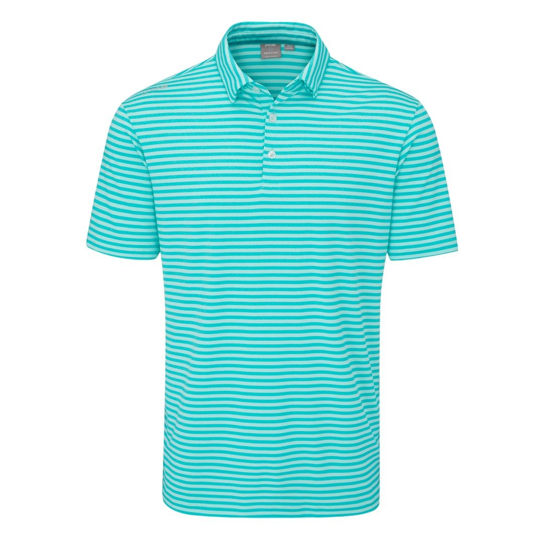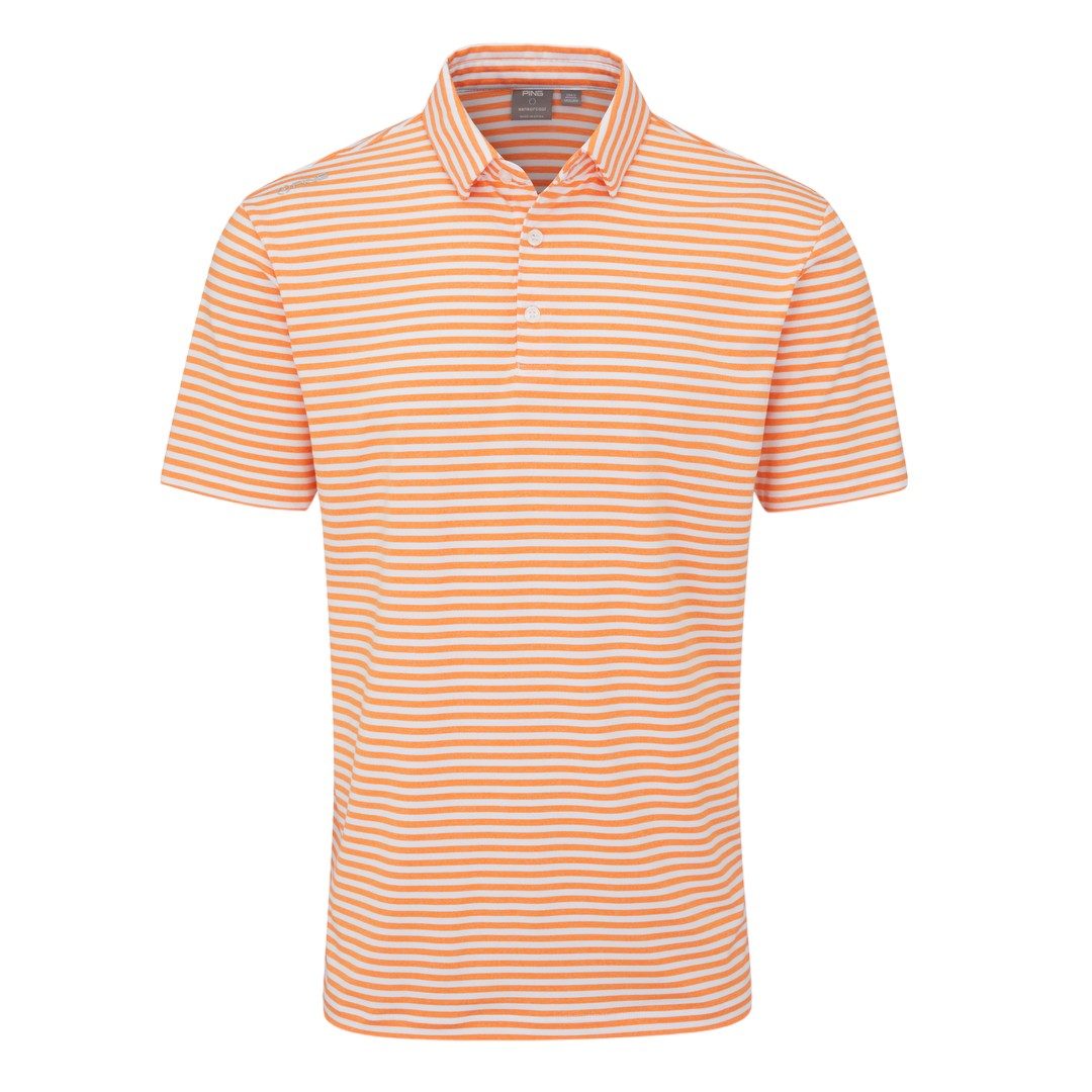 The Ping Owain Golf Polo Shirt offers a modern, striped design while incorporating SensorCool® technology for ultimate moisture-wicking comfort in any weather. Made from a durable blend of polyester and elastane, this polo is perfect for golfers looking for both style and functionality.