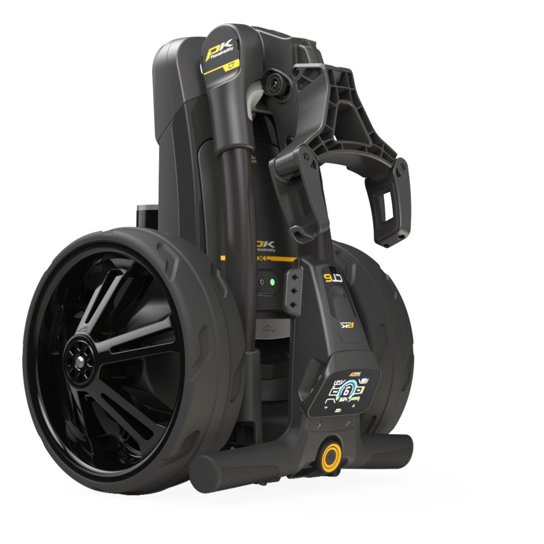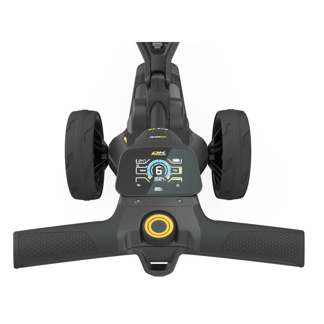 The Powakaddy 2025 CT6 Electric Golf Trolley is designed by experts for the ultimate golfing experience. With a compact fold, mid-size full colour widescreen, and USB-C charging port, it's perfect for on-the-go convenience. The adjustable handle and integrated carry handle add to its ease of use.