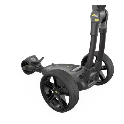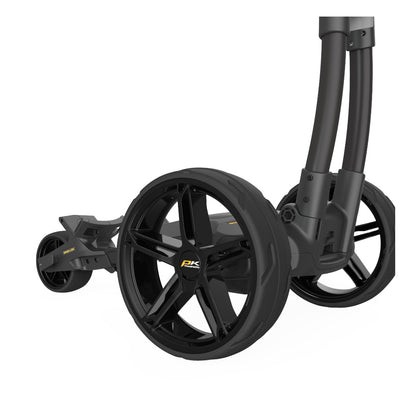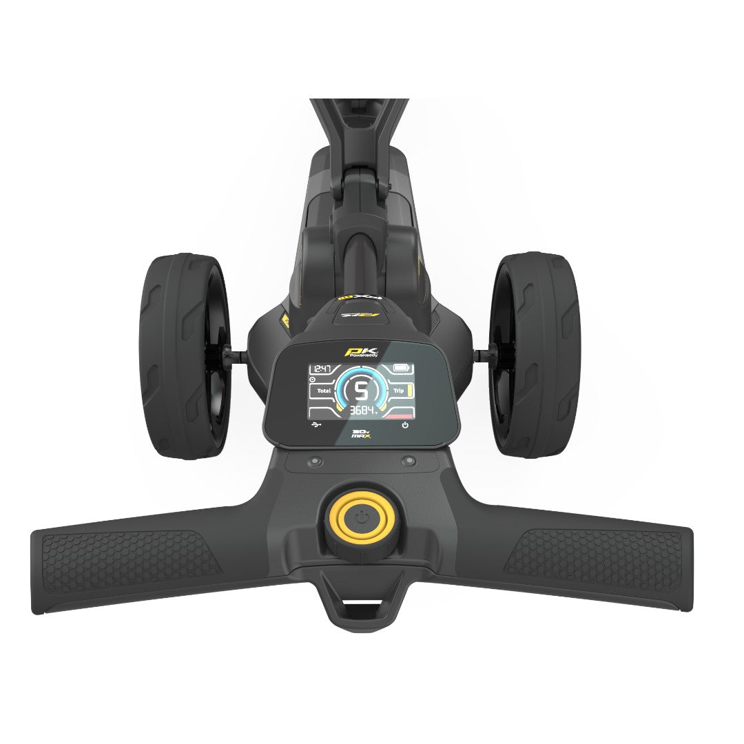 The Powakaddy 2025 FX5 Electric Golf Trolley is the top-of-the-line option in the FX range. In addition to its bright 2.8" widescreen display, it also features distance measuring capabilities and an integrated USB-C charging port. Perfect for the performance-driven golfer seeking convenience and accuracy on the course.