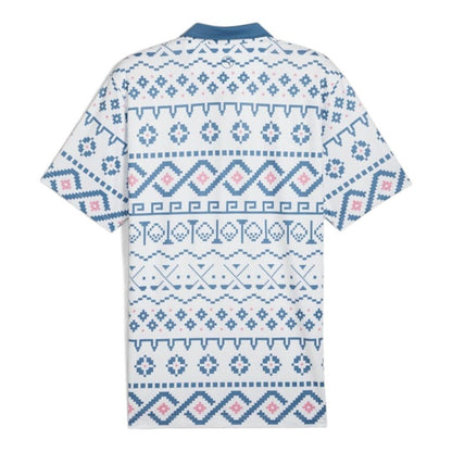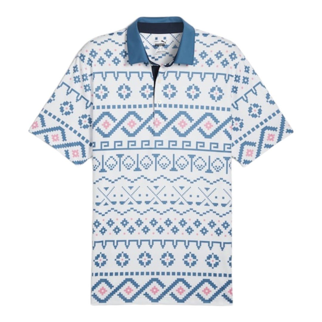 Puma Fair Isle Print Golf Polo Shirt 626836 | White Glow/Blue Horizon 01