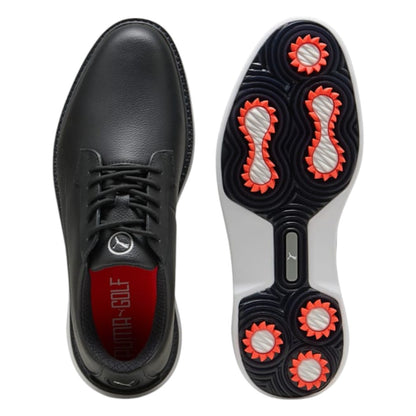 Elevate your golf game with the Puma Royale Golf Shoes. Made for serious golfers, these Puma golf shoes offer premium full-grain leather, a PROFOAM midsole, and a FLEXSPIKE outsole for unbeatable traction. The stitched TPU welt and PROMOLD sockliner provide superior cushioning and support with a sleek, classic design.