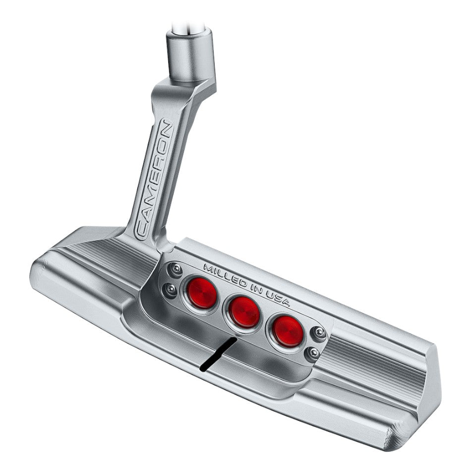 This flagship model of the family, the Newport 2, remains focused on modern performance with its refined tri-sole design, I-beam plumbing neck, and crisp contours. The putter is designed and precision milled in the United States using 303 stainless steel and customizable tungsten sole weights, with an added touch of racy red cherry dots.