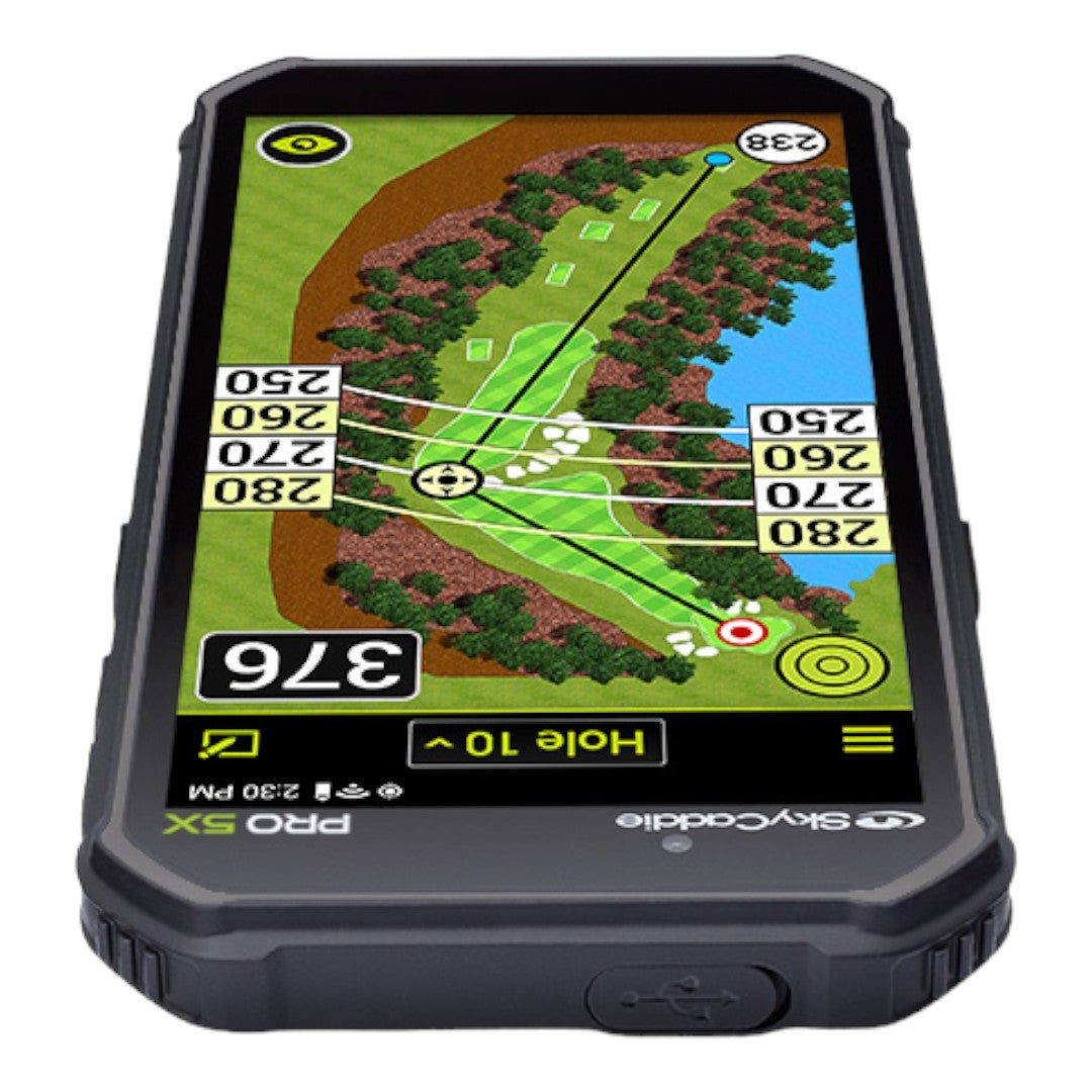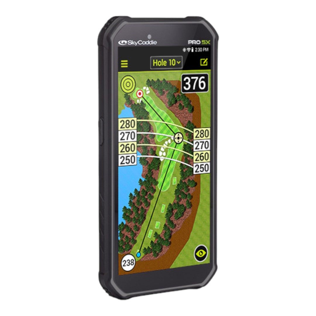 The SkyCaddie PRO 5X Golf GPS Rangefinder offers a vibrant viewing experience with a 5.5" LCD colour touch screen and full-colour HD graphics. Get a complete view of the hole and make precise shots with ease. Increase your game with a stunning visual experience.
