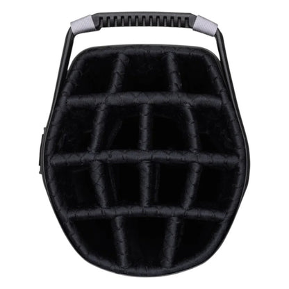 This golf bag features a 14-way top with full length box dividers, and weighs 2.0kg. It is designed with VLO Technology, making it the ultimate hybrid bag for golfers. It also includes 7 pockets, such as a valuables pocket, full length clothing pocket, and hydration pouch, as well as a contoured E-Z Lite Dual Strap System. Made with water-resistant fabric and zippers, it also has convenient features like a bottom lift assist, pen holder, umbrella holder, towel, glove holder, and comes with a rainhood.