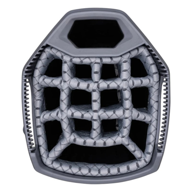 This Sun Mountain H2NO Lite Golf Cart Bag 27cm top with 14-way full-length dividers, features a dedicated large putter well for fat grips. Weighing only 2.6kg, this bag also includes seven pockets, such as a velour-lined valuables pocket and multiple front-facing accessory pockets, all easily accessible. Made with lightweight nylon and waterproof coating on both sides, this bag is equipped with high quality waterproof zippers and taped seams to keep all contents dry. Two top mounted grab handles, reinforced wear areas for cart use, and holders for a pen, towel, and umbrella complete this bag's functionality. A rainhood is also included.